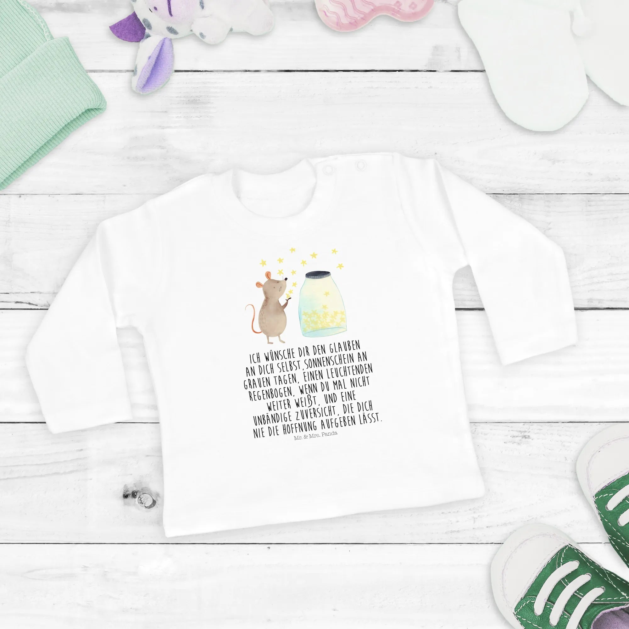 Entdecke das 12-18 Monate Baby Langarmshirt in einem bezaubernden Maus Sterne Design aus der zauberhaften Small World Kollektion von Mr. & Mrs. Panda! Dieses Kleidungsstück ist nicht nur ein süßer Blickfang, sondern auch ein symbolisches Geschenk für die kleinen Lieblinge in deinem Leben. Ideal als erstes Taufgeschenk, zur Geburt oder zur Taufe, strahlt dieses Longsleeve pure Freude und Hoffnung aus. Geziert von einer niedlichen Maus, die vor einem Glas funkelnder Sterne sitzt, lädt es dazu ein, in die Welt der Träume und Abenteuer einzutauchen. Mit dem begleitenden Slogan: 'Ich wünsche dir den Glauben an dich selbst, Sonnenschein an grauen Tagen, einen leuchtenden Regenbogen, wenn du mal nicht weiter weißt, und eine unbändige Zuversicht, die dich nie die Hoffnung aufgeben lässt.' vermittelt dieses Shirt eine positive Botschaft, die deinem Kind Freude und Zuversicht bringen wird.