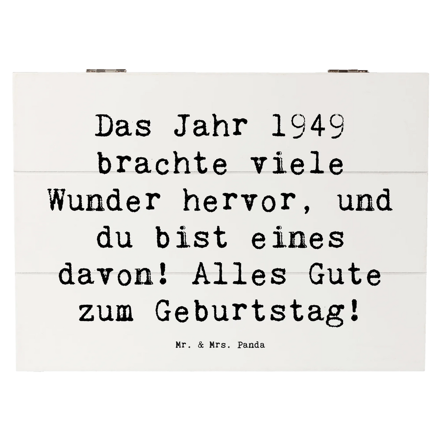 Entdecke die wunderschöne Holzkiste "1949 Geburtstag" von Mr. & Mrs. Panda – das perfekte Geschenk für alle, die in diesem Jahr zur Welt kamen! Diese liebevoll gestaltete Erinnerungskiste ist nicht nur ein Aufbewahrungsort für wertvolle Schätze, sondern auch eine kreative Geschenkidee für Geburtstagsfeiern und besondere Anlässe.