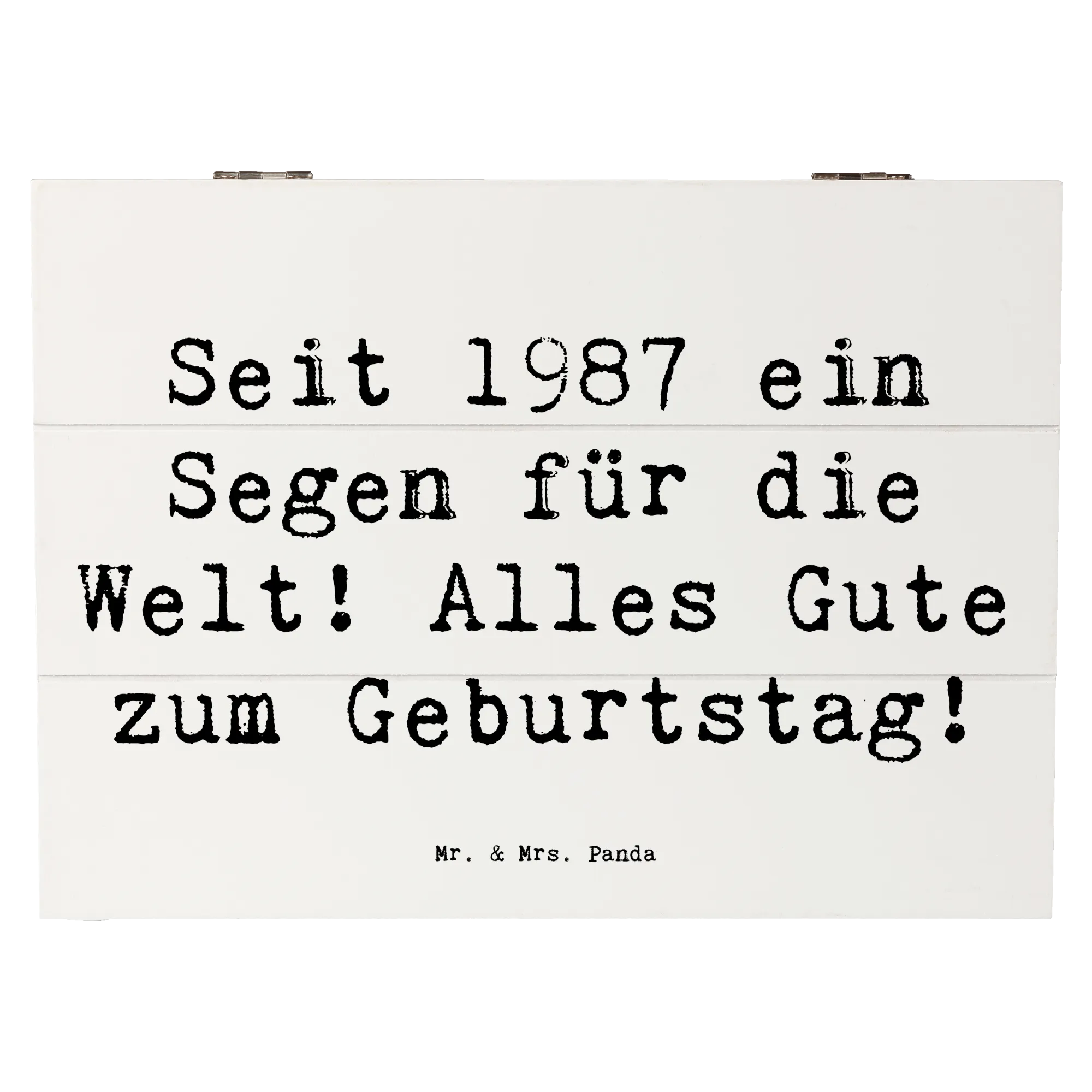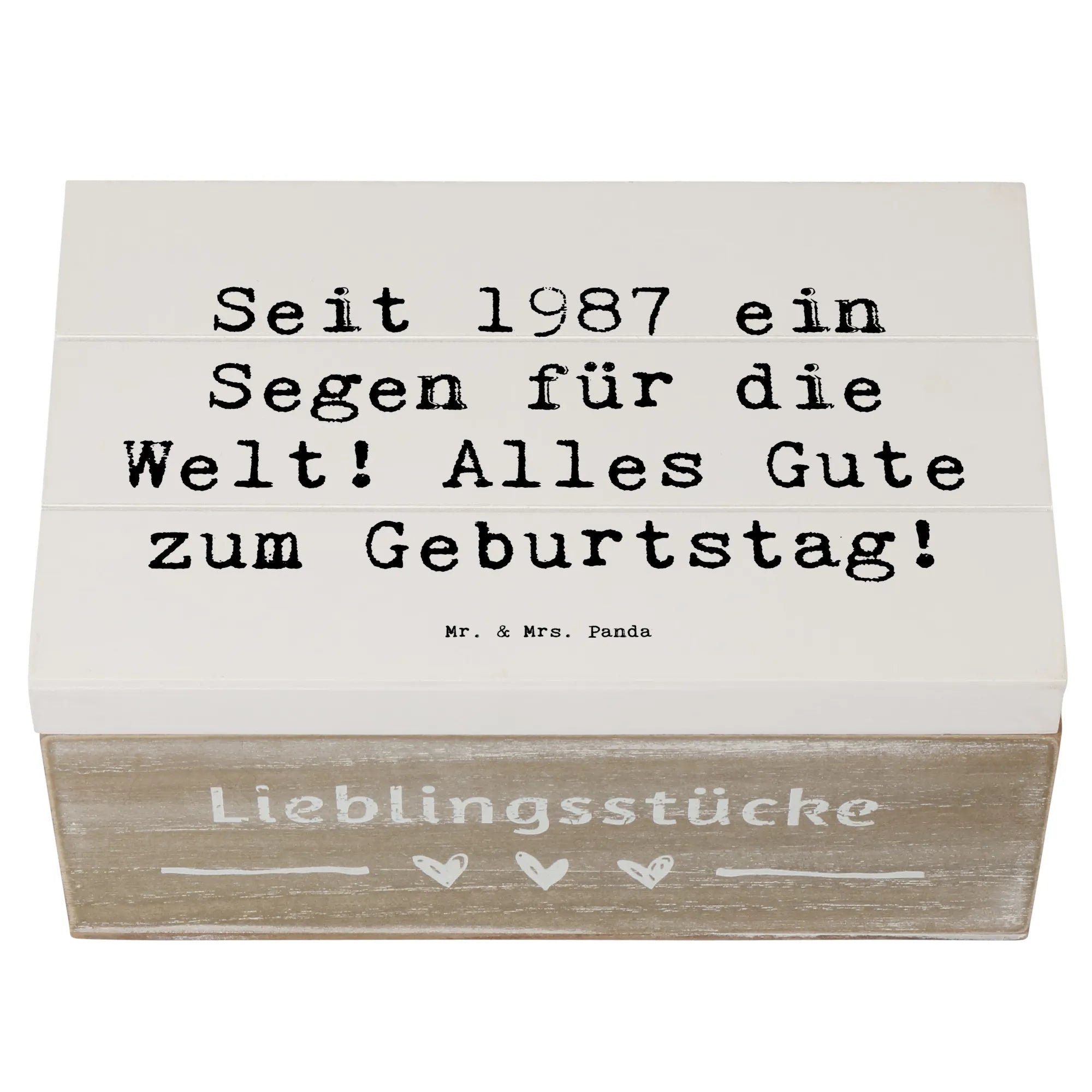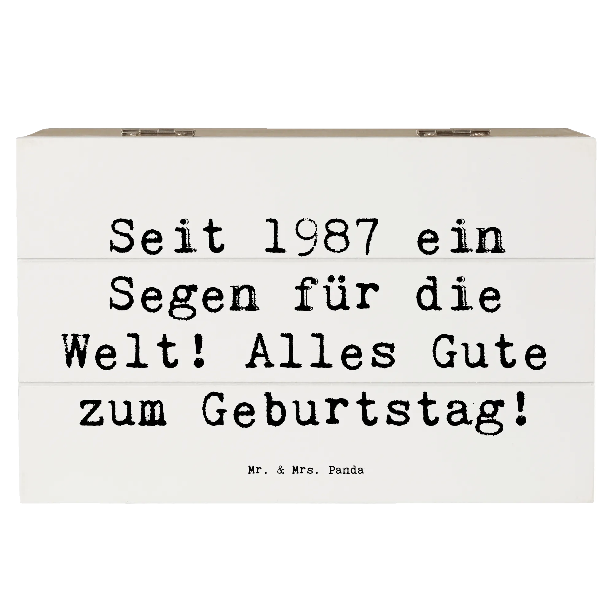 Die wunderschöne Holzkiste von Mr. & Mrs. Panda ist das perfekte Geschenk für alle, die 1987 geboren wurden! Mit ihrem liebevollen Design und dem Spruch "Seit 1987 ein Segen für die Welt! Alles Gute zum Geburtstag!" ist sie nicht nur eine Erinnerung an einen besonderen Geburtstag, sondern auch ein toller Aufbewahrungsort für all deine Schätze.