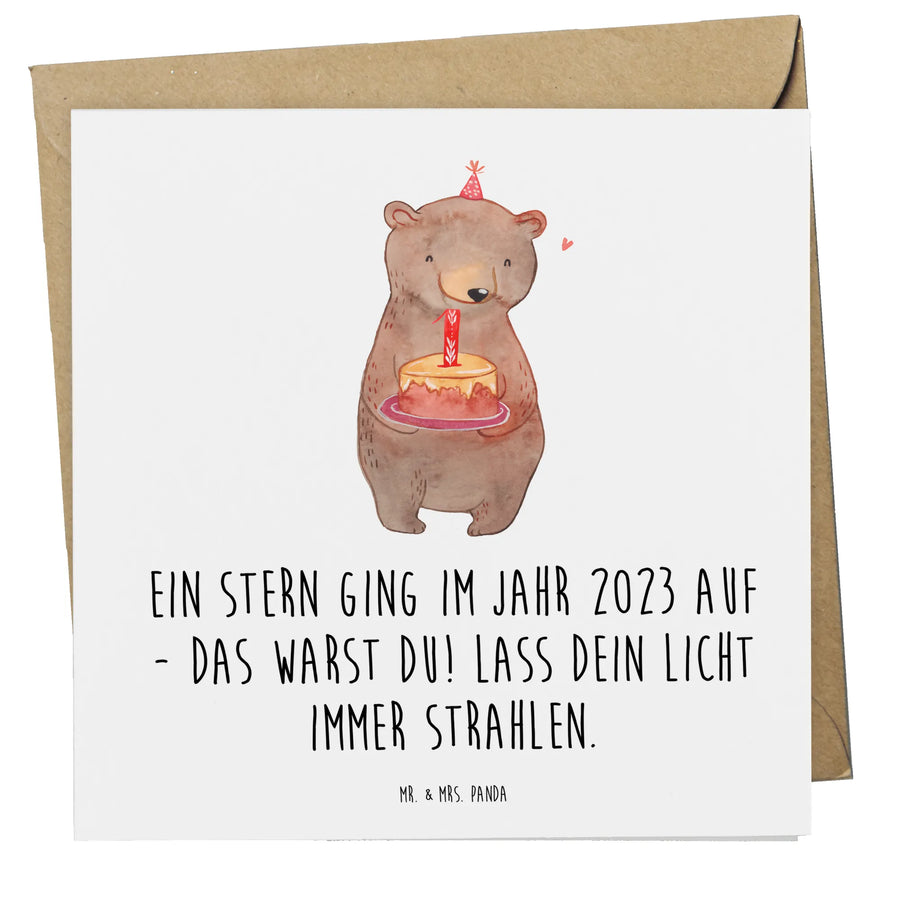 Die Deluxe Karte 2023 Geburtstag von Mr. & Mrs. Panda ist das perfekte Geschenk, um lieben Menschen zu ihrem besonderen Tag zu gratulieren! Mit dem zauberhaften Motiv 'Ein Stern ging im Jahr 2023 auf - das warst Du! Lass dein Licht immer strahlen.' bringt diese wunderschöne quadratische Karte Freude und Liebe in dein Leben.