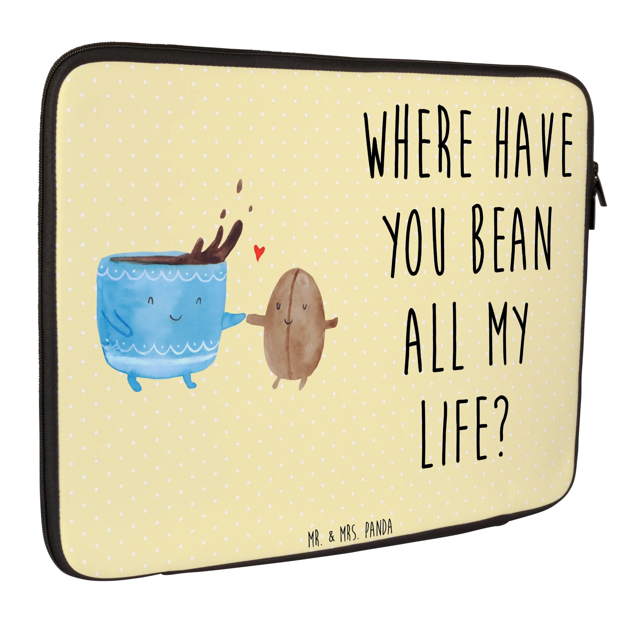 Perfekt geeignet für Berufstätige, Studenten oder kreative Köpfe, die ihren Laptop stilvoll schützen möchten und dabei nicht auf ein niedliches Design verzichten wollen. Ein Geschenk, das sowohl praktisch als auch von Herzen kommt! Verschenke Freude, Genuss und ein Stück Lebensfreude mit der tollen Notebook Tasche "Kaffeebohne" von Mr. & Mrs. Panda.
