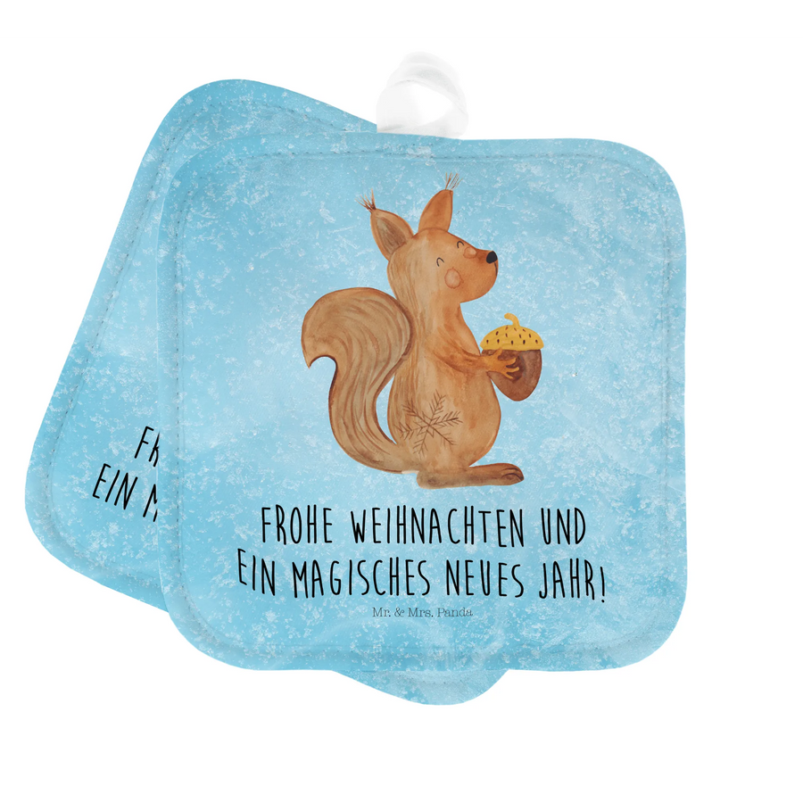 2er Set Topflappen Eichhörnchen Weihnachtszeit - mit Spruch - Eisblau