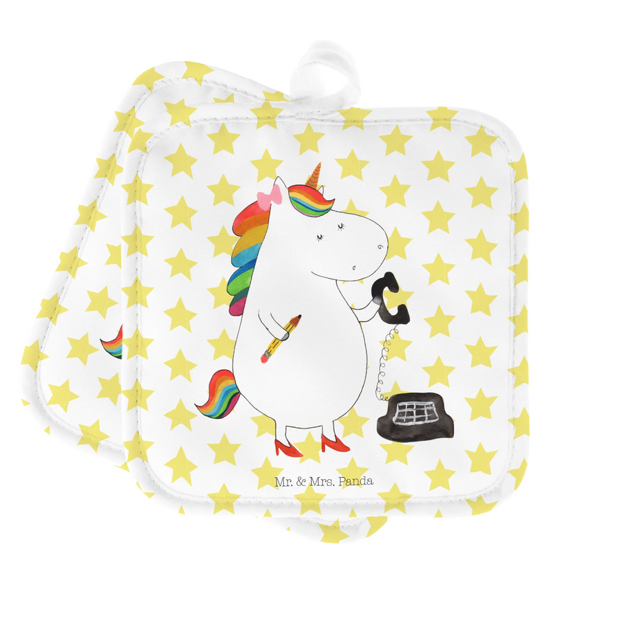 2er Set Topflappen Einhorn Sekretärin - ohne Spruch - Weiß