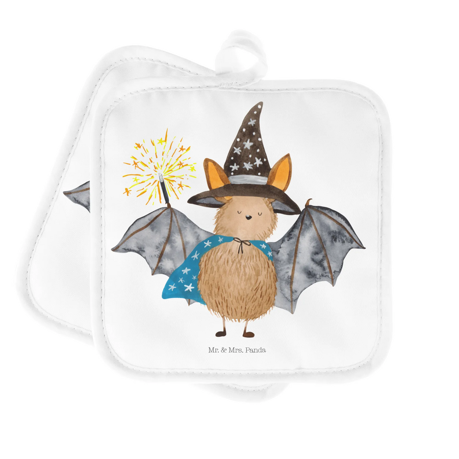 2er Set Topflappen Fledermaus Zauberer - ohne Spruch - Weiß
