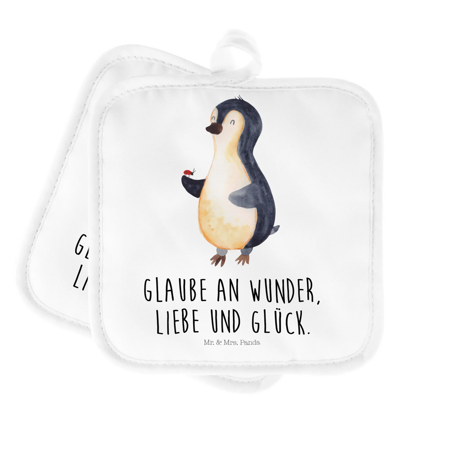 Entdecke das zauberhafte 2er Set Topflappen mit dem niedlichen Pinguin Marienkäfer aus der exklusiven Pinguin-Kollektion von Mr. & Mrs. Panda. Dieses Set ist nicht nur ein praktisches Küchenaccessoire, sondern auch ein wahrer Blickfang, der jedem Koch und jeder Köchin ein Lächeln ins Gesicht zaubert.