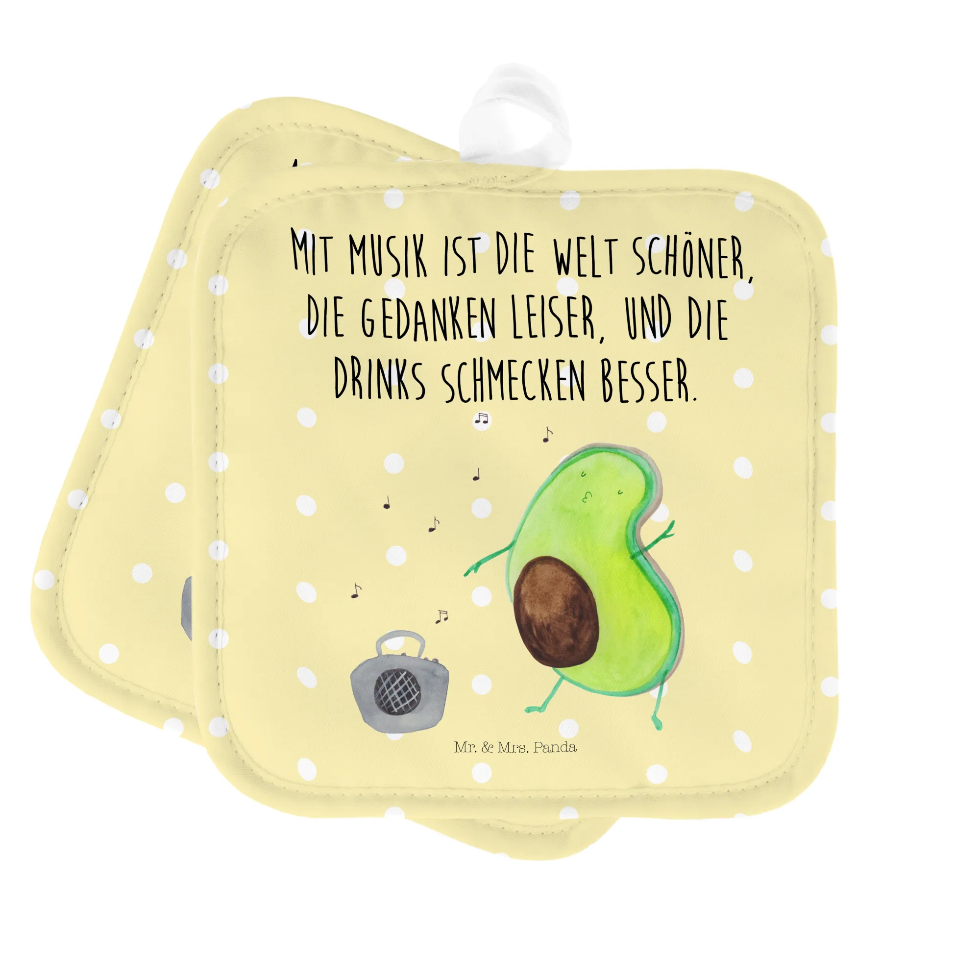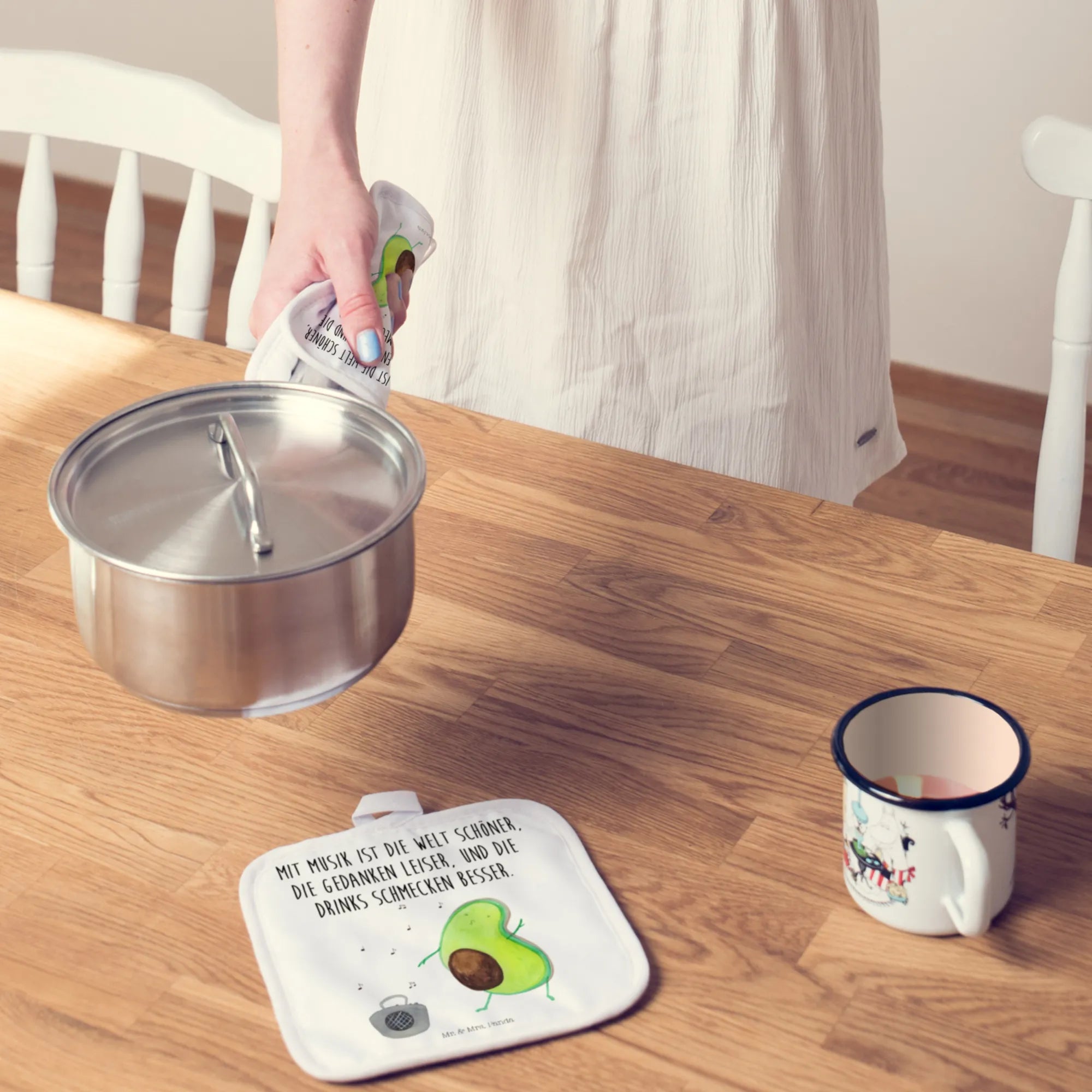 Entdecke das bezaubernde 2er Set Topflappen mit dem fröhlichen Motiv "Avocado tanzt" von Mr. & Mrs. Panda! Diese hochwertigen Topflappen sind nicht nur super praktisch, sie bringen auch Freude in jede Küche. Mit einer niedlichen Avocado, die vor einem Ghettoblaster zur Musik tanzt, verleihen sie deinem Kochbereich eine positive Ausstrahlung.
