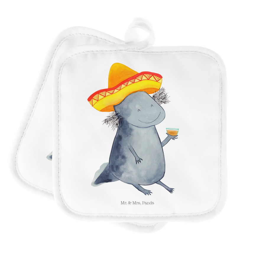 2er Set Topflappen Axolotl Tequila - ohne Spruch - Weiß
