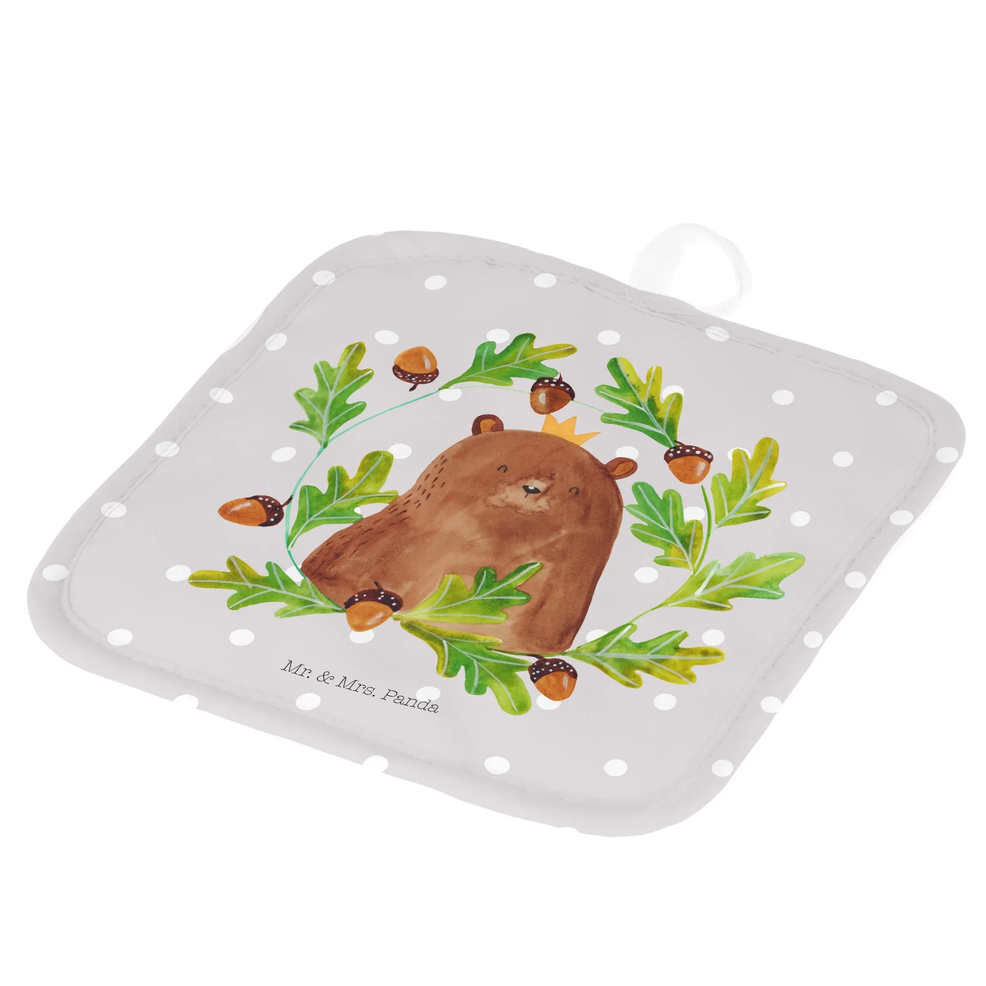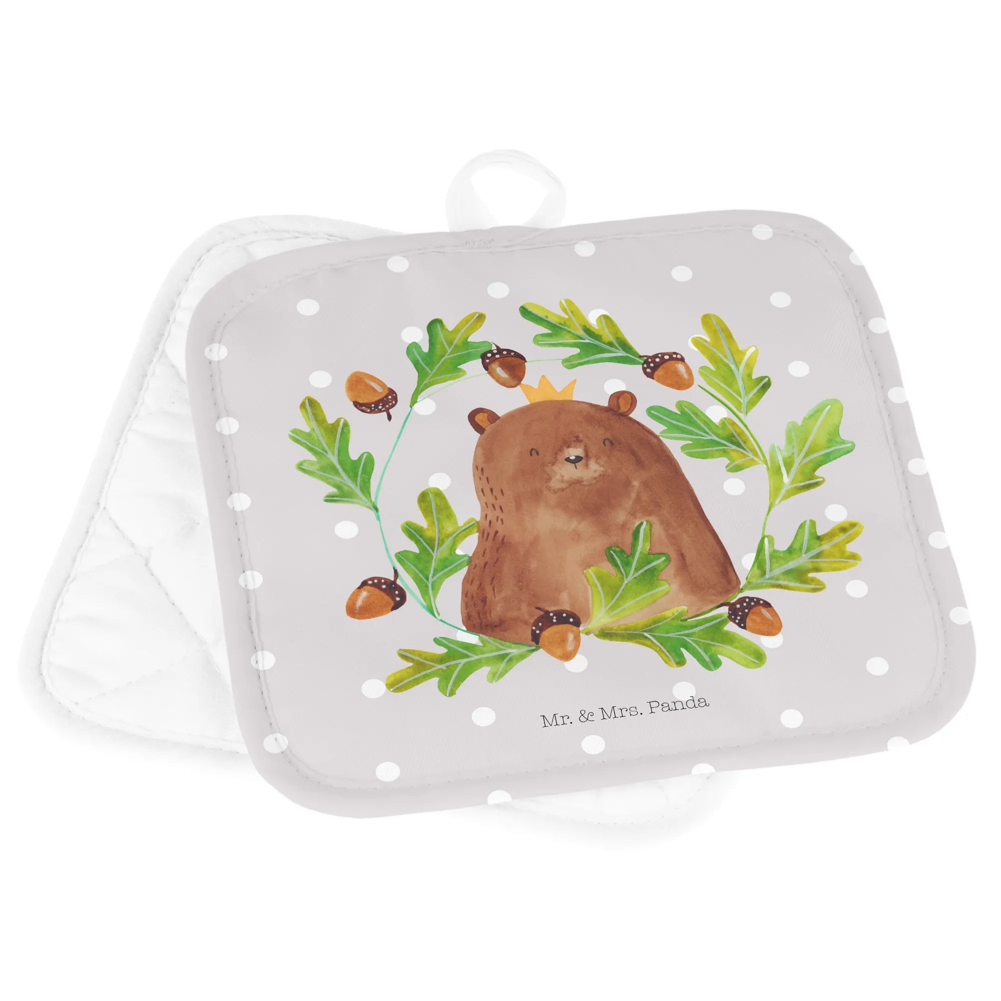 2er Set Topflappen Bär König - mit Spruch - Grau Pastell