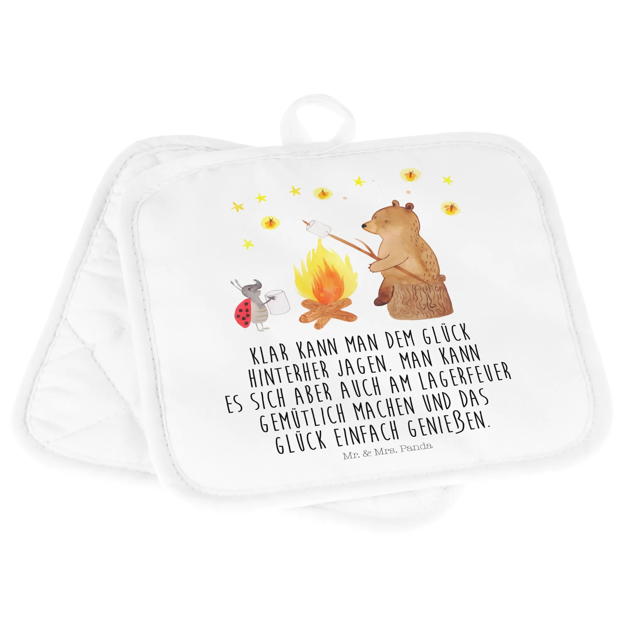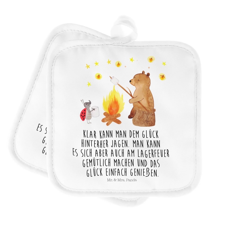 2er Set Topflappen Bär & Marienkäfer Lagerfeuer - mit Spruch