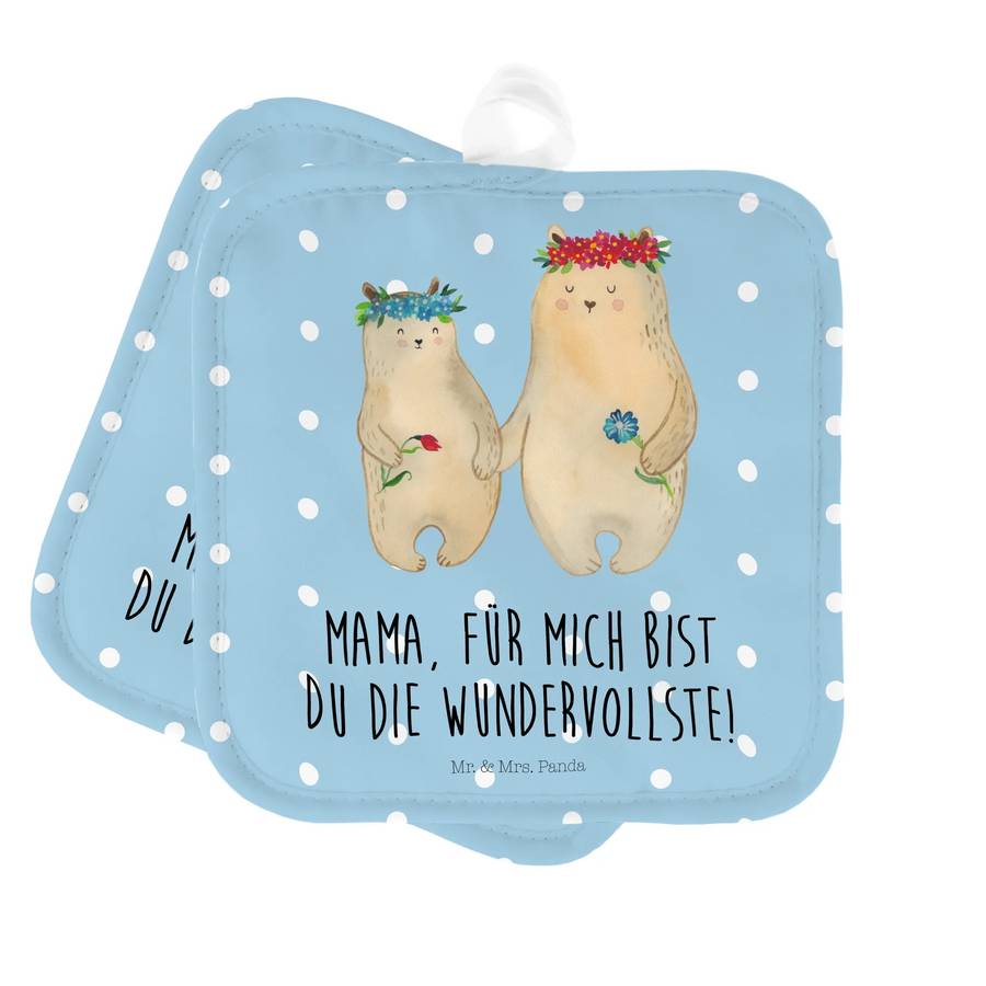 Entdecke die zauberhaften 2er Set Topflappen mit den süßen Bären, die einen Blumenkranz tragen! Diese wunderschönen Topflappen von Mr. & Mrs. Panda sind das perfekte Geschenk für alle, die ihre Mutter lieben. Der liebevolle Slogan "Mama, für mich bist du die Wundervollste!" macht sie zu einem idealen Geschenk zum Muttertag oder als Überraschung für den Geburtstag.