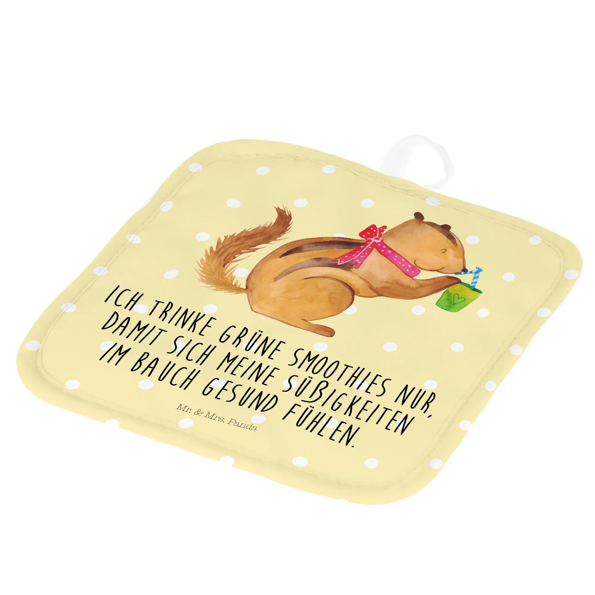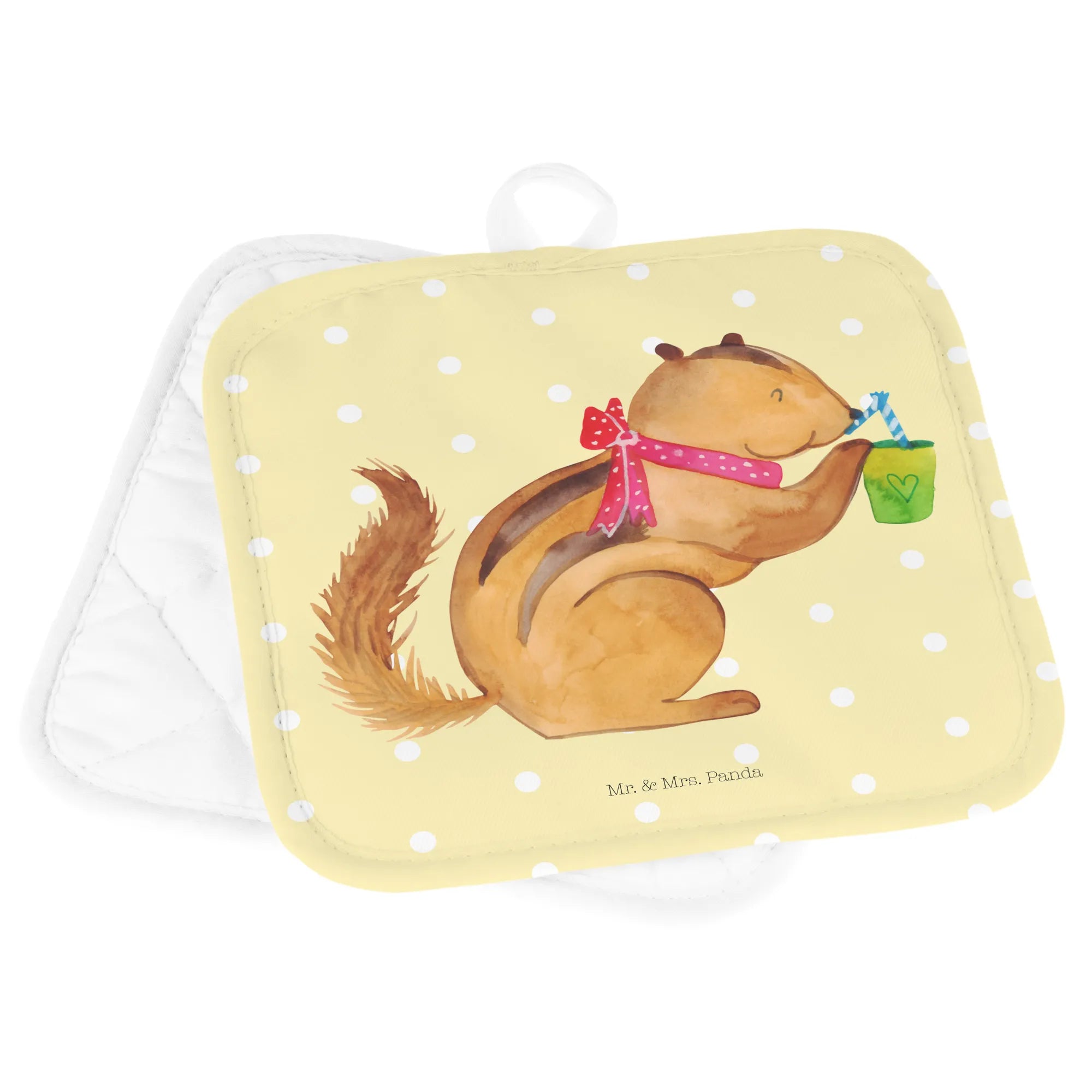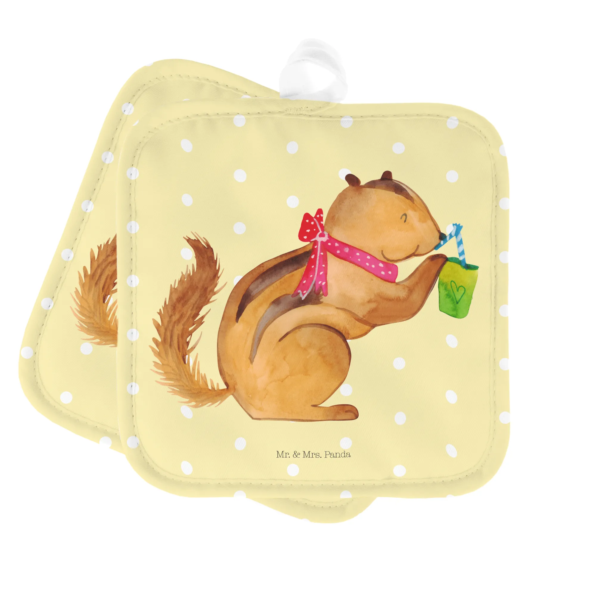 2er Set Topflappen Eichhörnchen Smoothie - mit Spruch - Gelb Pastell