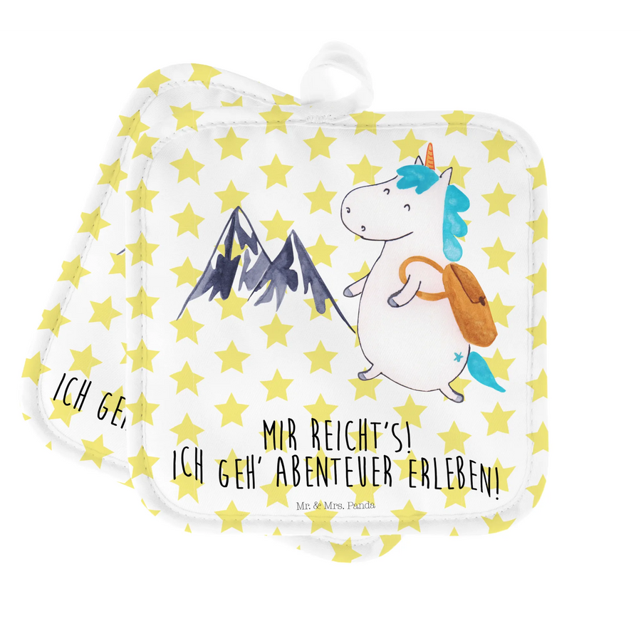 2er Set Topflappen Einhorn Bergsteiger - mit Spruch - Weiß