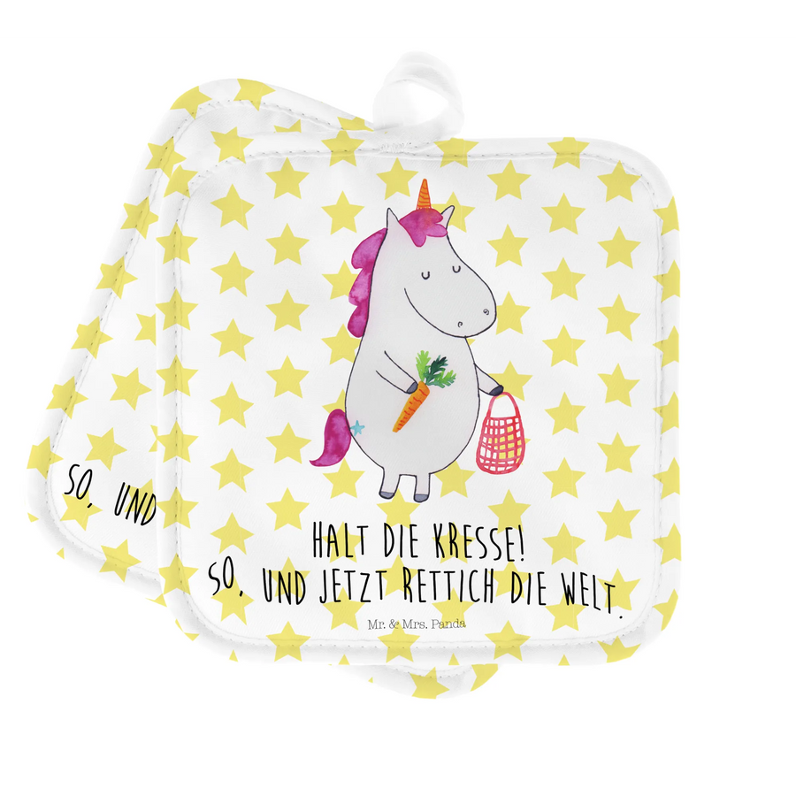2er Set Topflappen Einhorn Gemüse - mit Spruch - Weiß