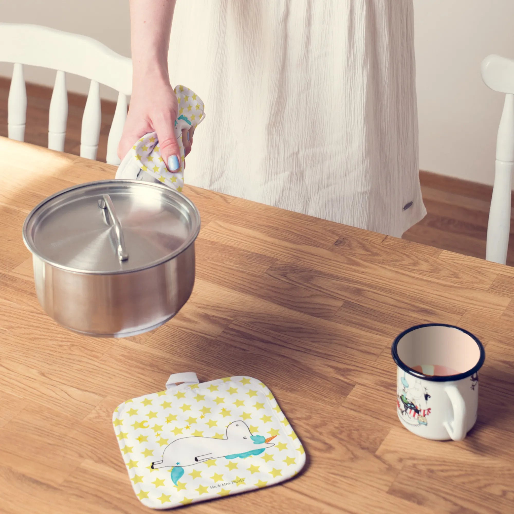 Das 2er Set Topflappen Einhorn Sternenhimmel von Mr. & Mrs. Panda ist das perfekte Geschenk für alle, die die zauberhafte Welt der Einhörner lieben! Diese wunderschönen Topflappen sind nicht nur praktisch, sondern auch ein echter Hingucker in Deiner Küche. Mit ihrem einzigartigen Motiv "Einhorn Sternenhimmel" bringen sie ein wenig Magie in Deinen Alltag.