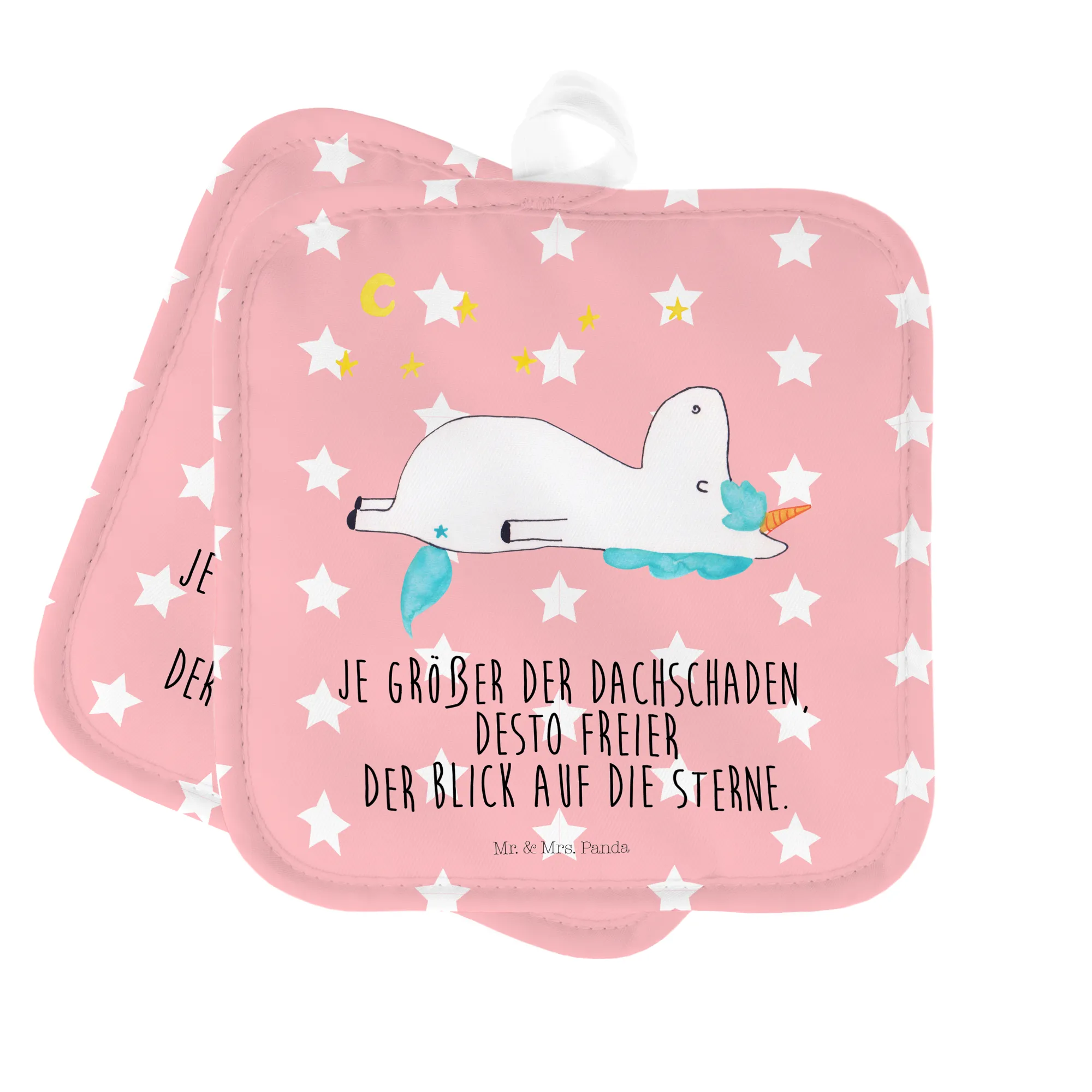 2er Set Topflappen Einhorn Sternenhimmel - mit Spruch - Rot Pastell