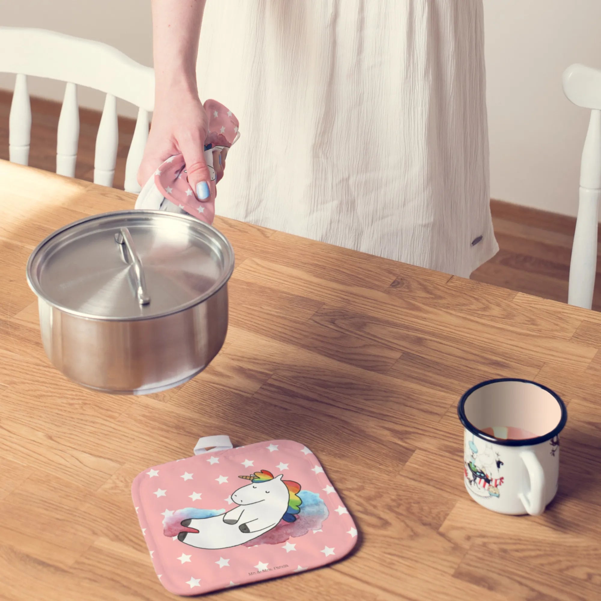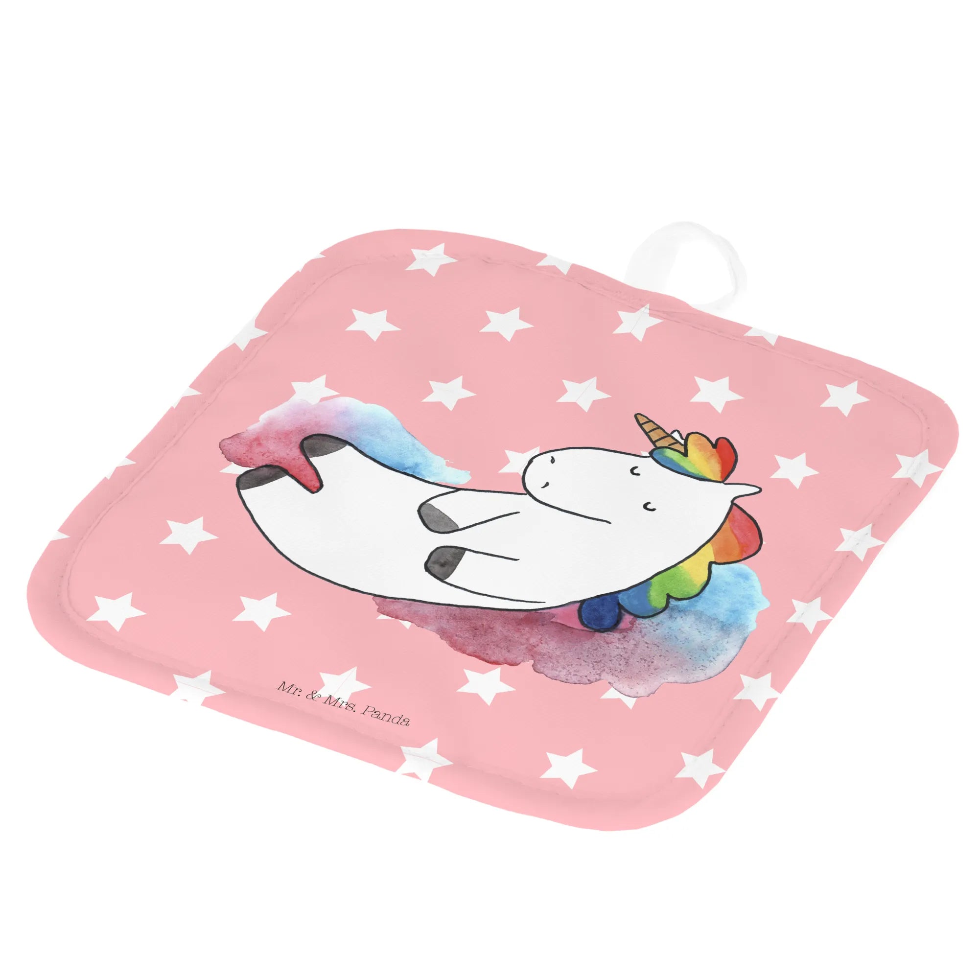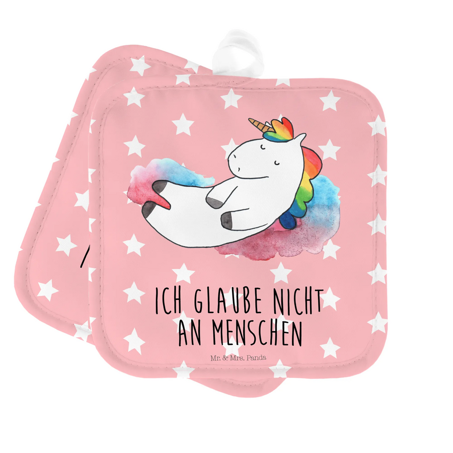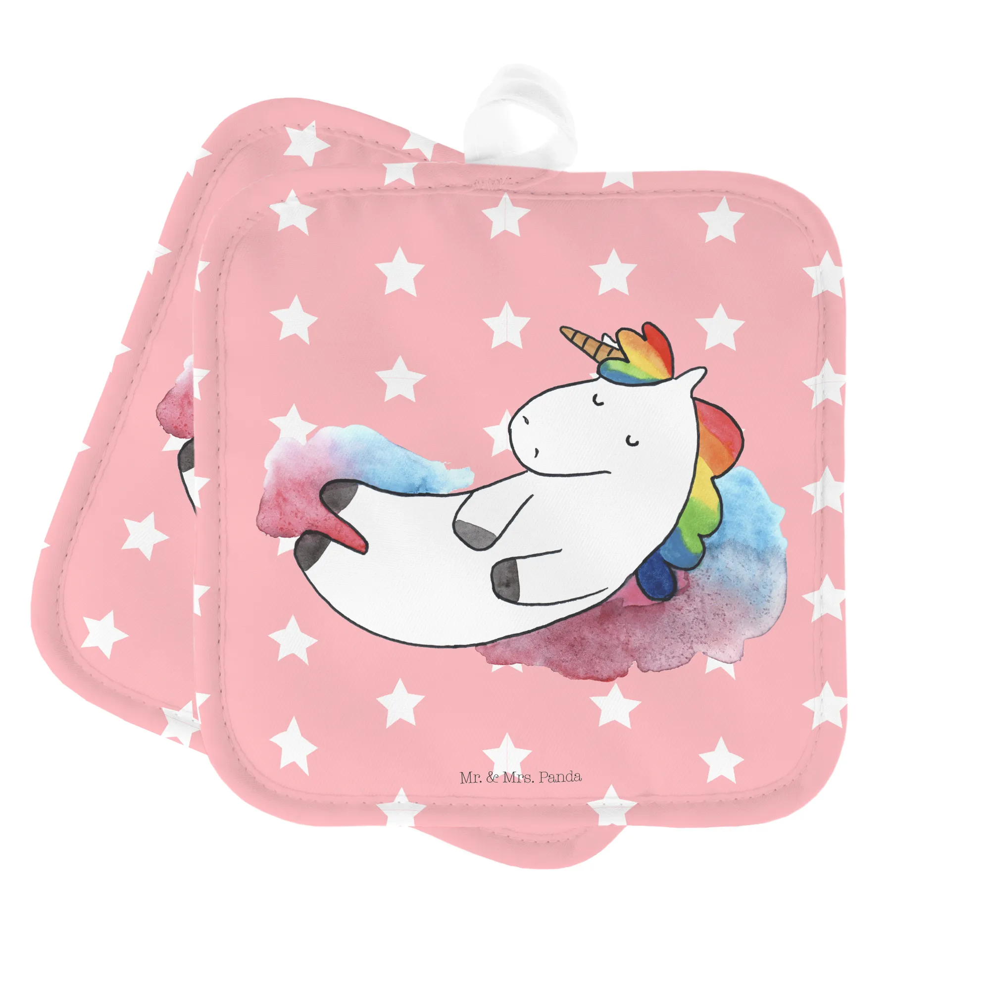 2er Set Topflappen Einhorn Wolke 7 - mit Spruch - Rot Pastell