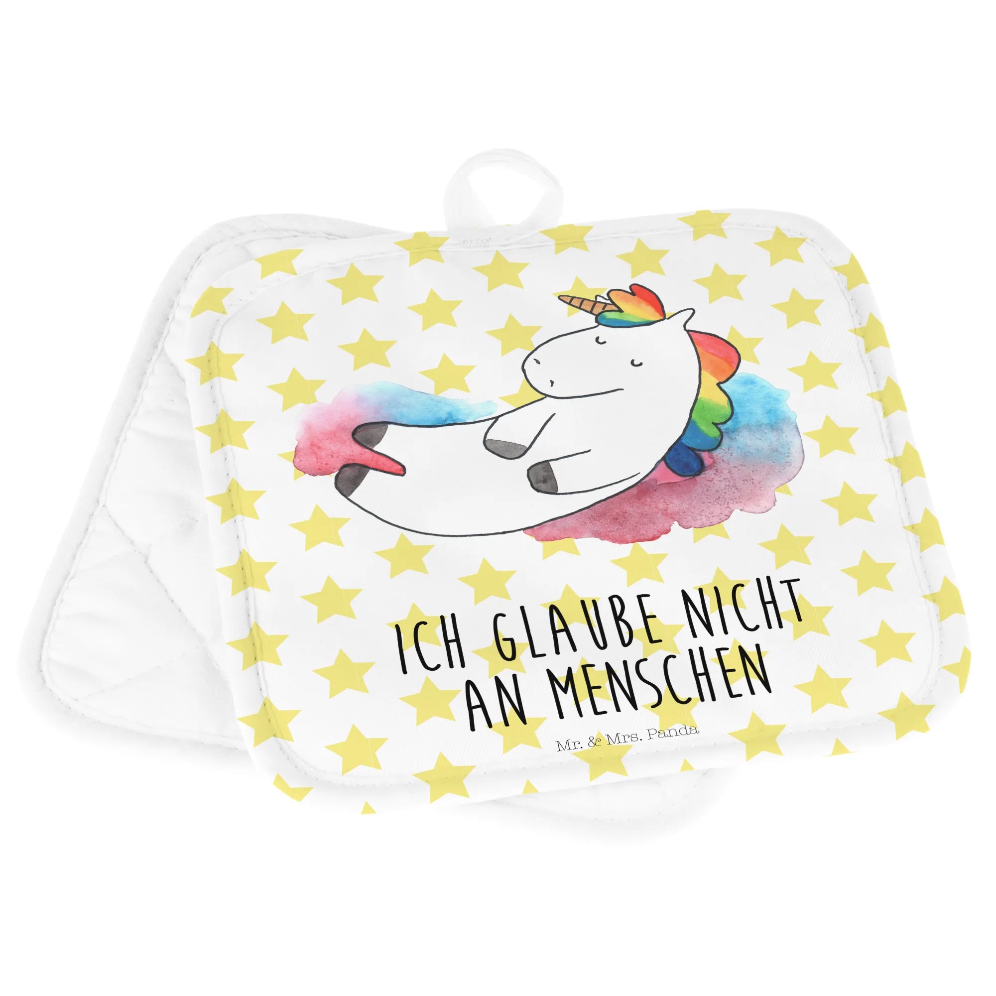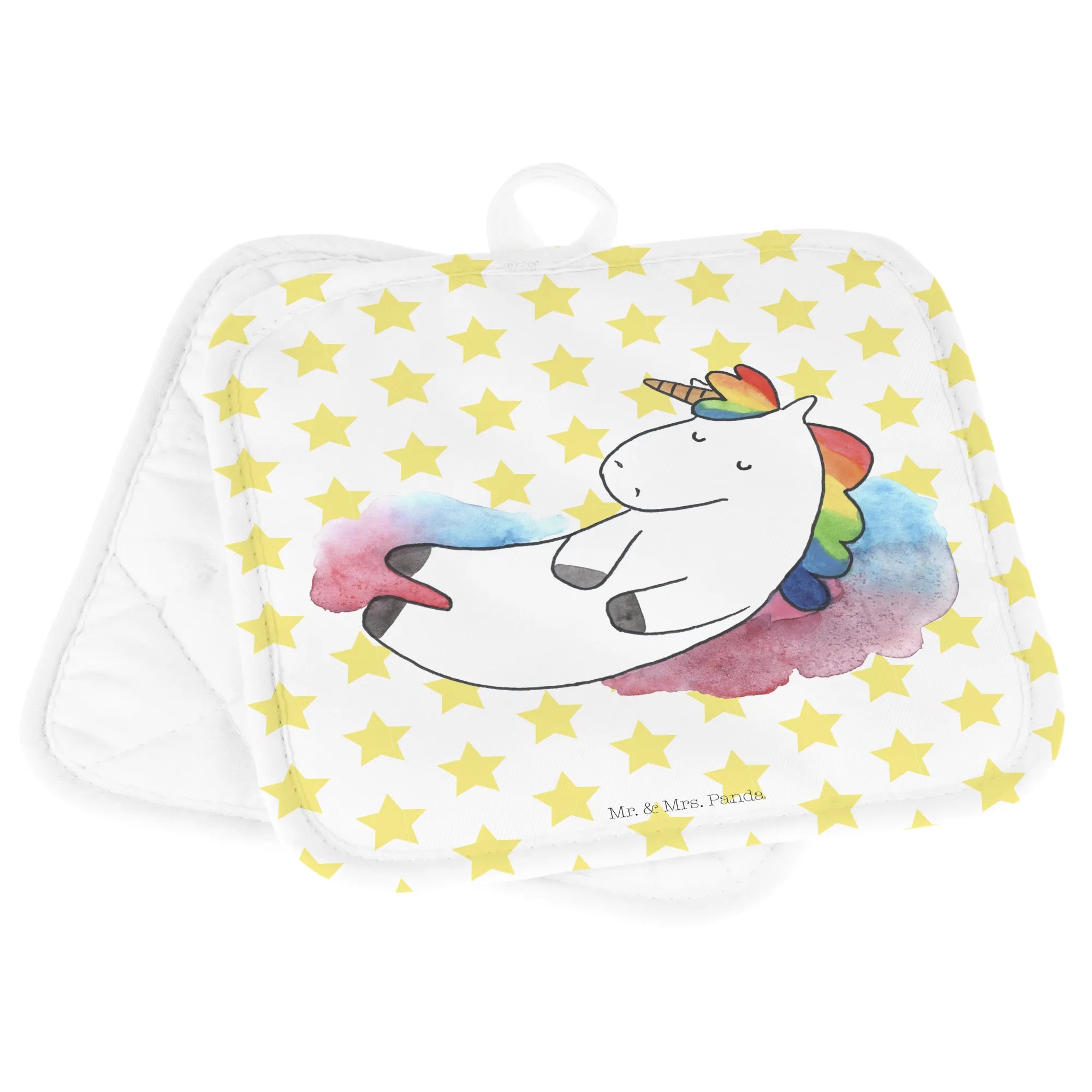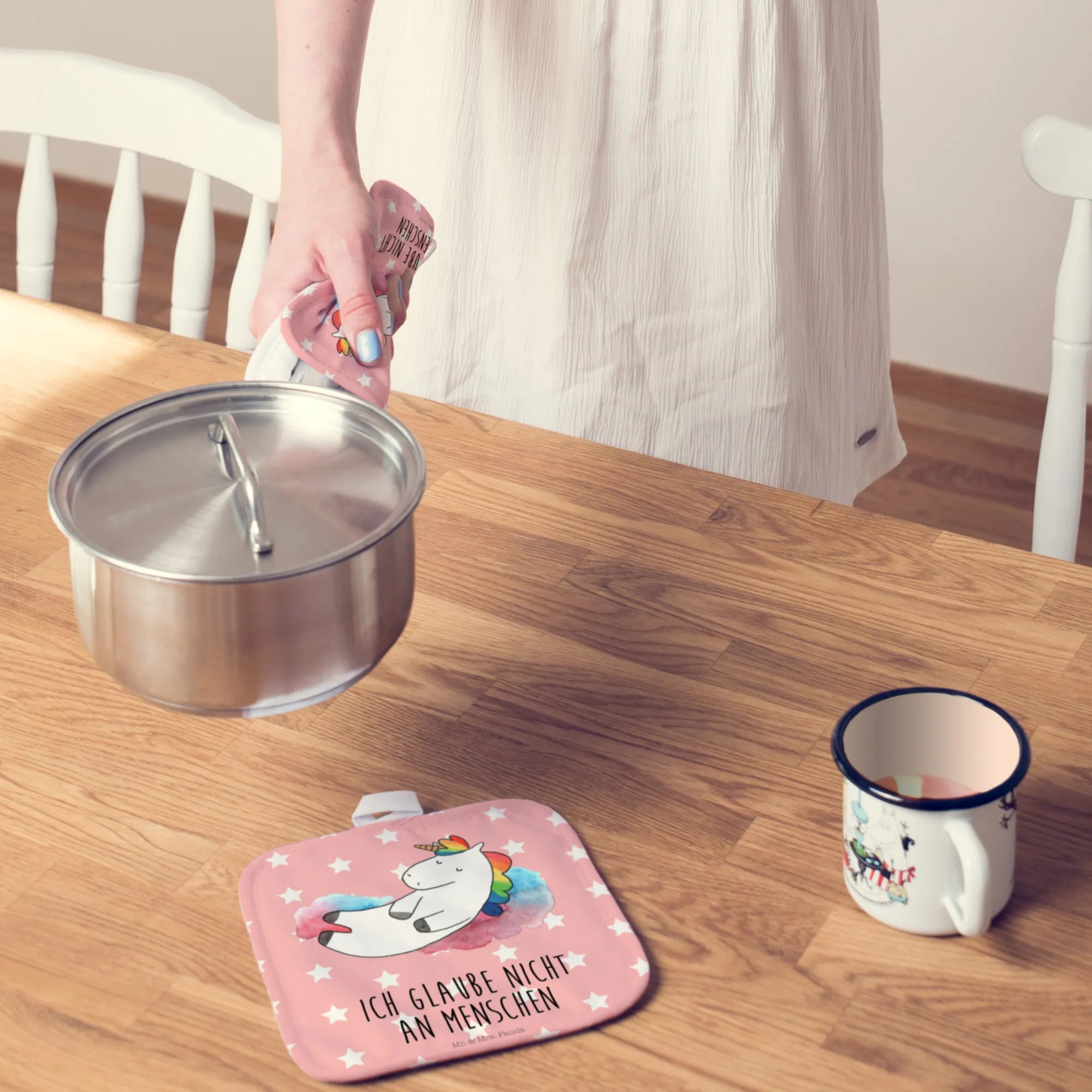 2er Set Topflappen Einhorn Wolke 7 - mit Spruch - Rot Pastell