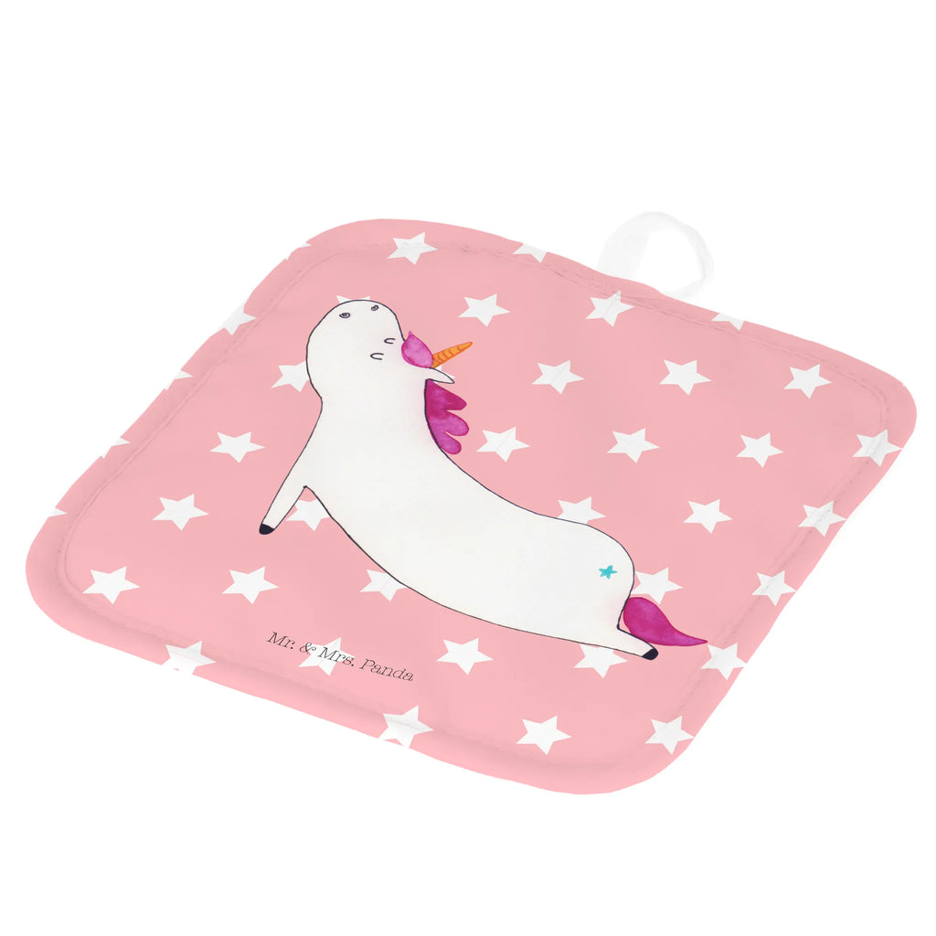 2er Set Topflappen Einhorn Yoga - mit Spruch - Rot Pastell