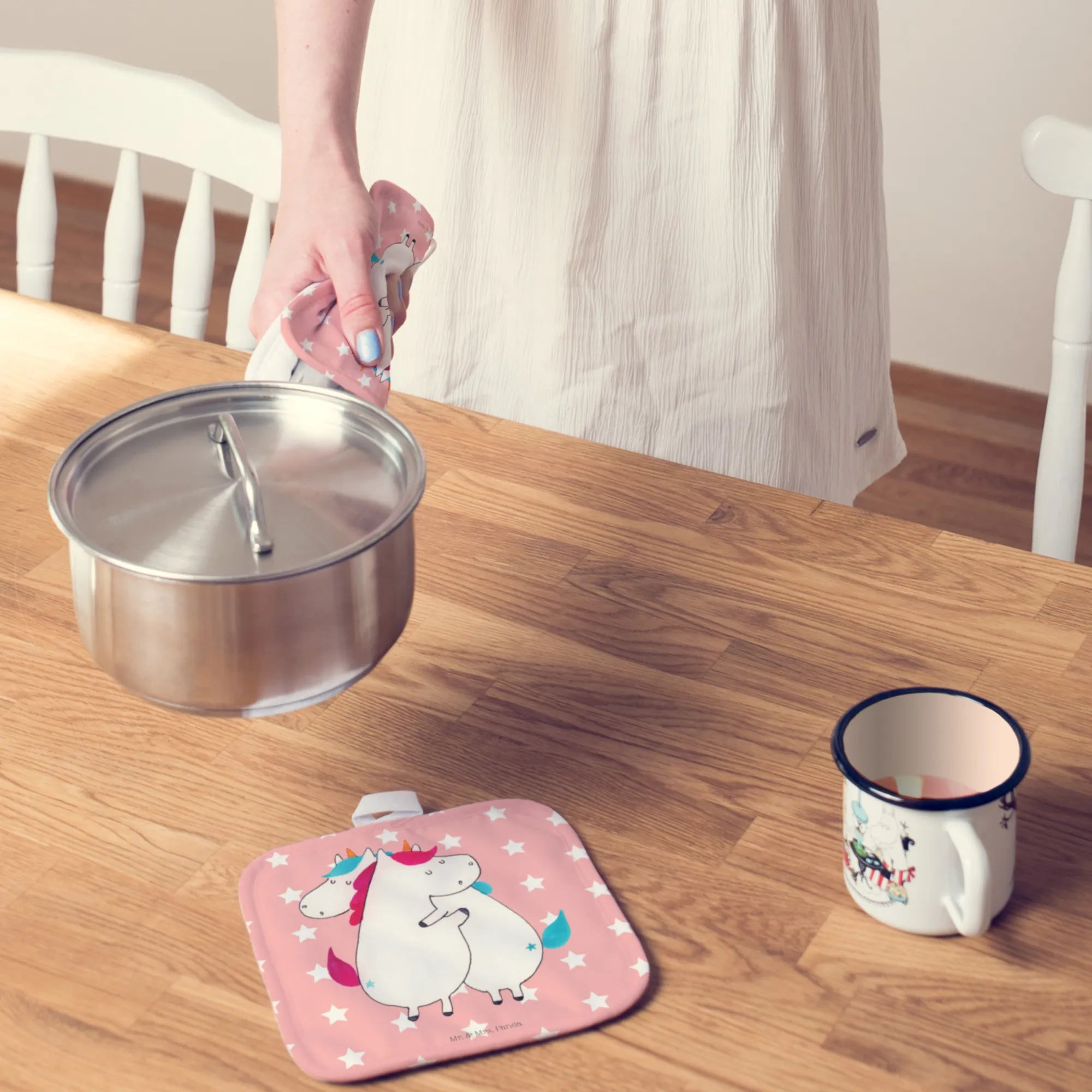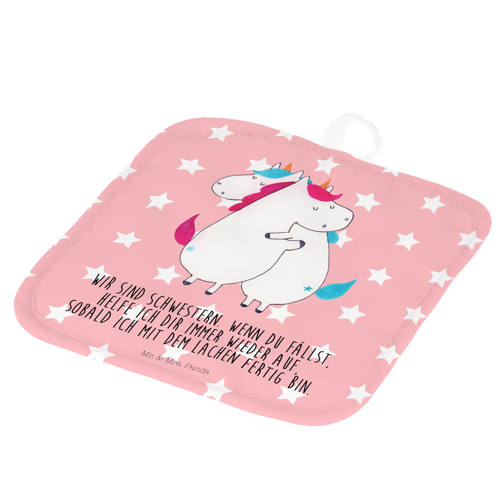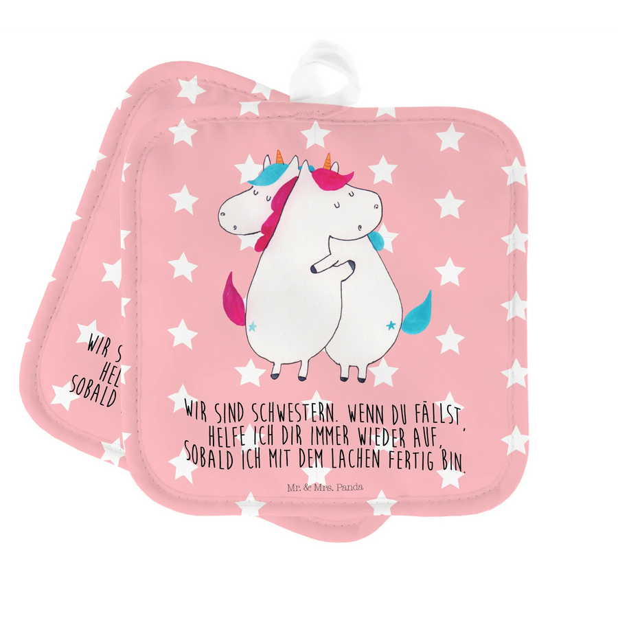 2er Set Topflappen Einhörner Umarmen - mit Spruch - Rot Pastell