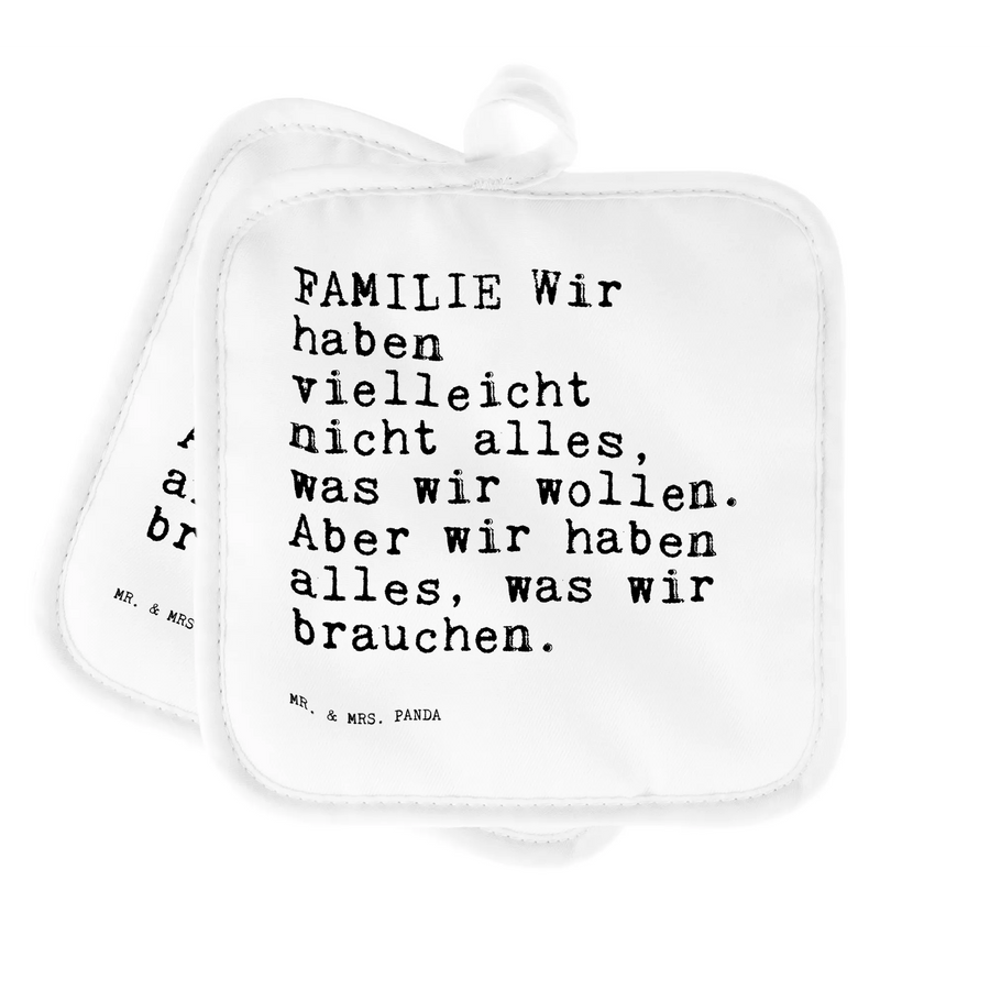 2er Set Topflappen Sprüche und Zitate FAMILIE Wir haben vielleicht nicht alles, was wir wollen. Aber wir haben alles, was wir brauchen.