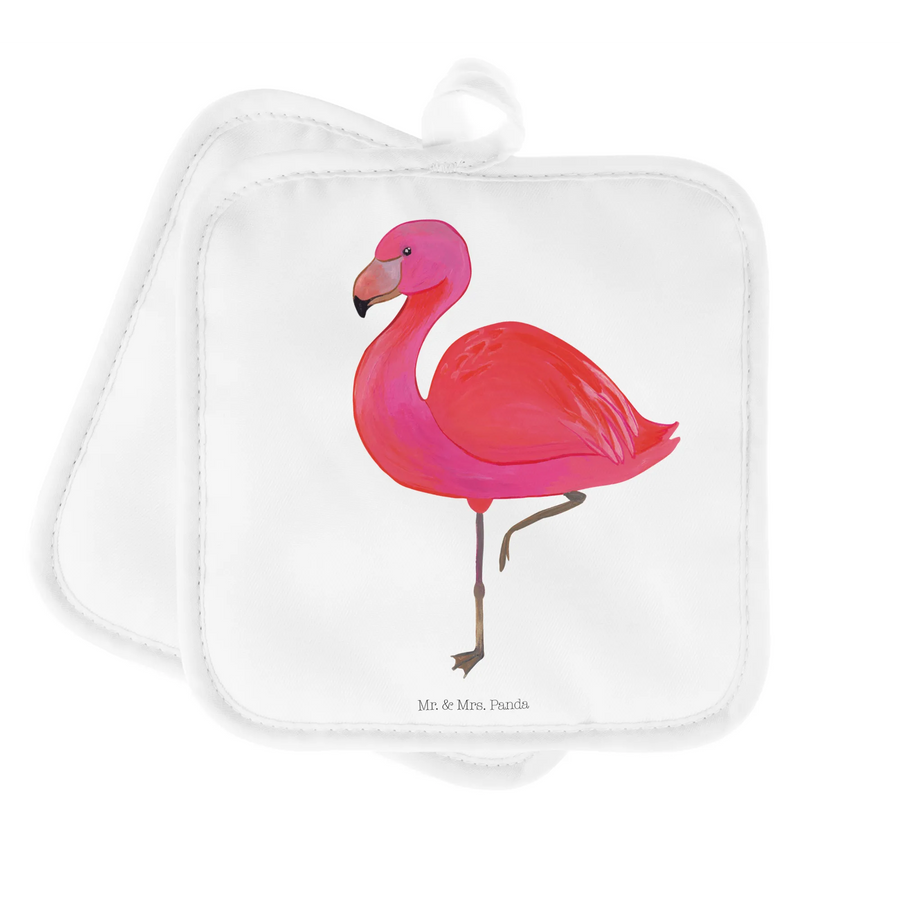 2er Set Topflappen Flamingo Classic - ohne Spruch - Weiß