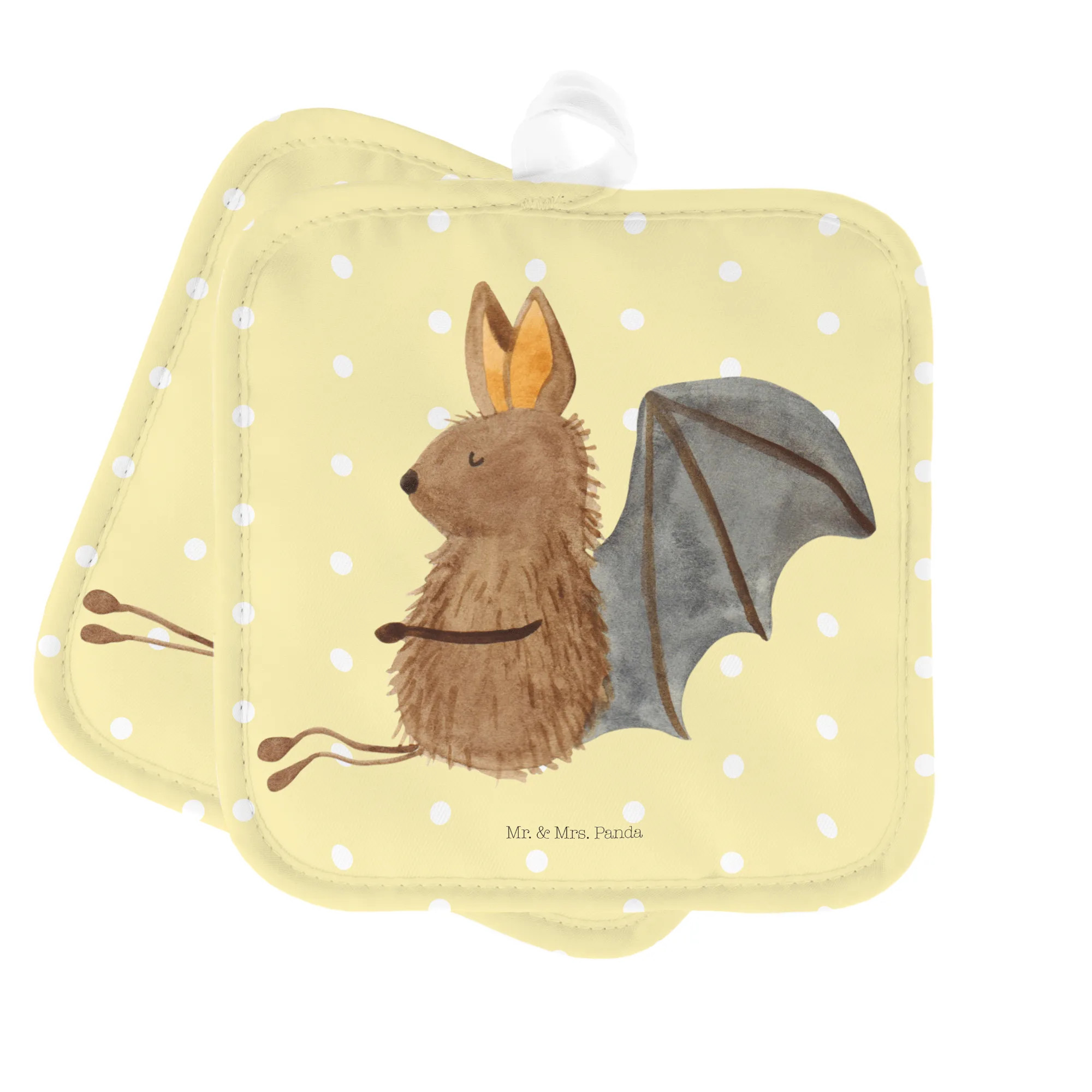 2er Set Topflappen Fledermaus Sitzen - mit Spruch - Weiß