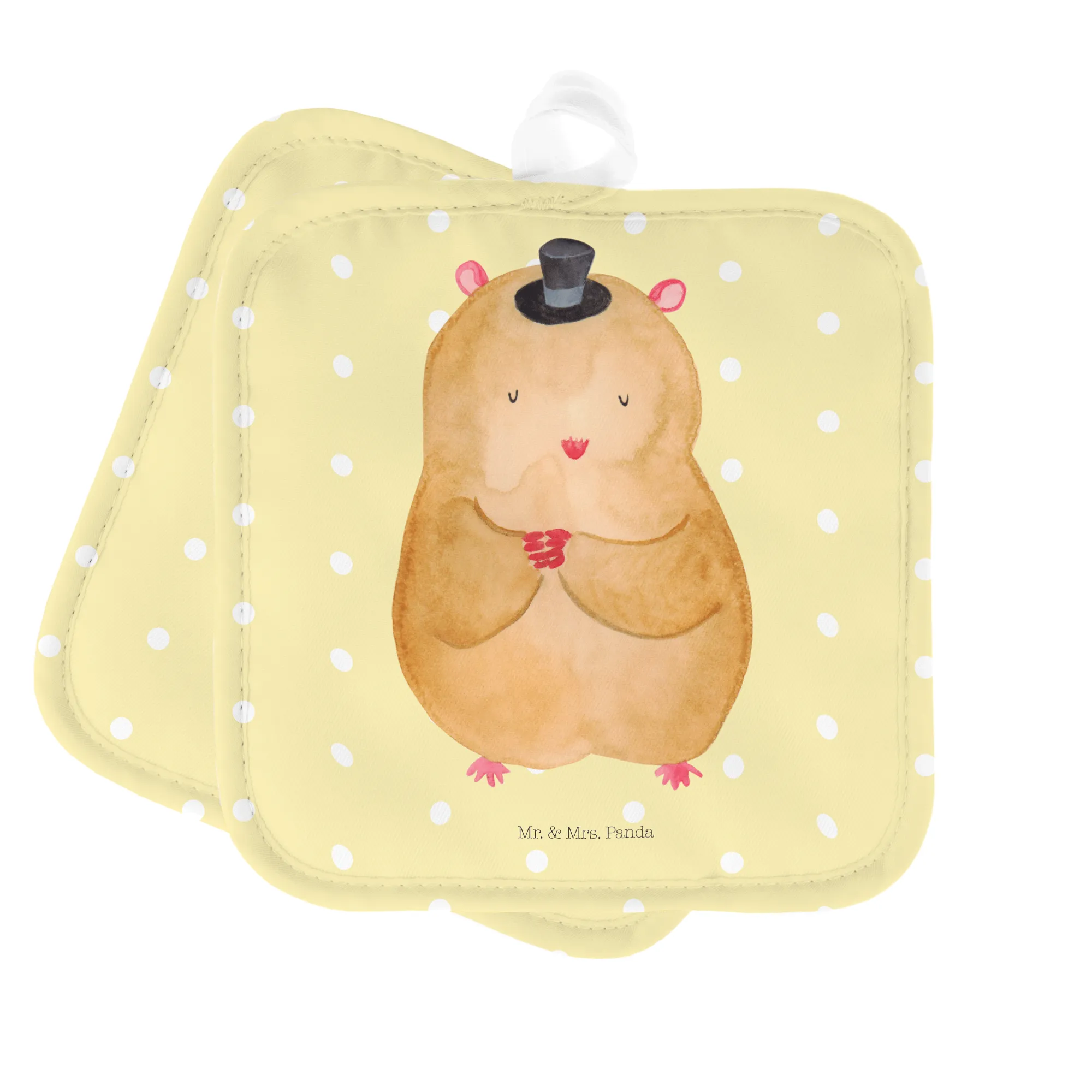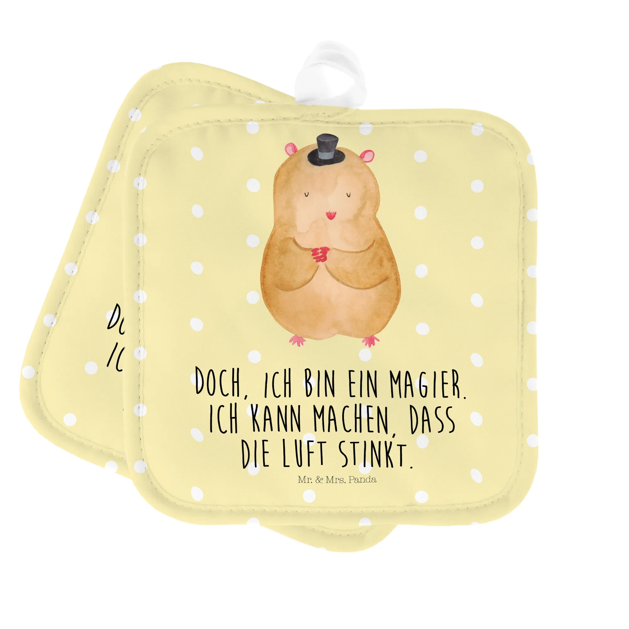 2er Set Topflappen Hamster Hut - mit Spruch - Gelb Pastell