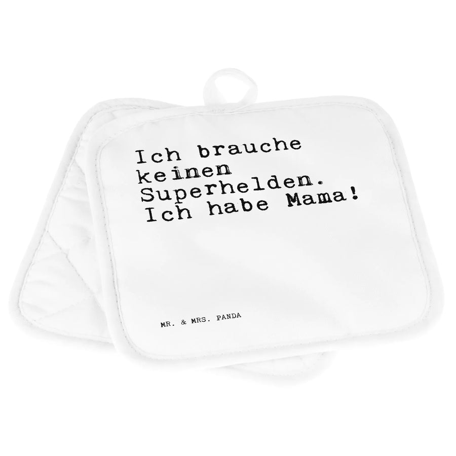 2er Set Topflappen Sprüche und Zitate Ich brauche keinen Superhelden. Ich habe Mama!