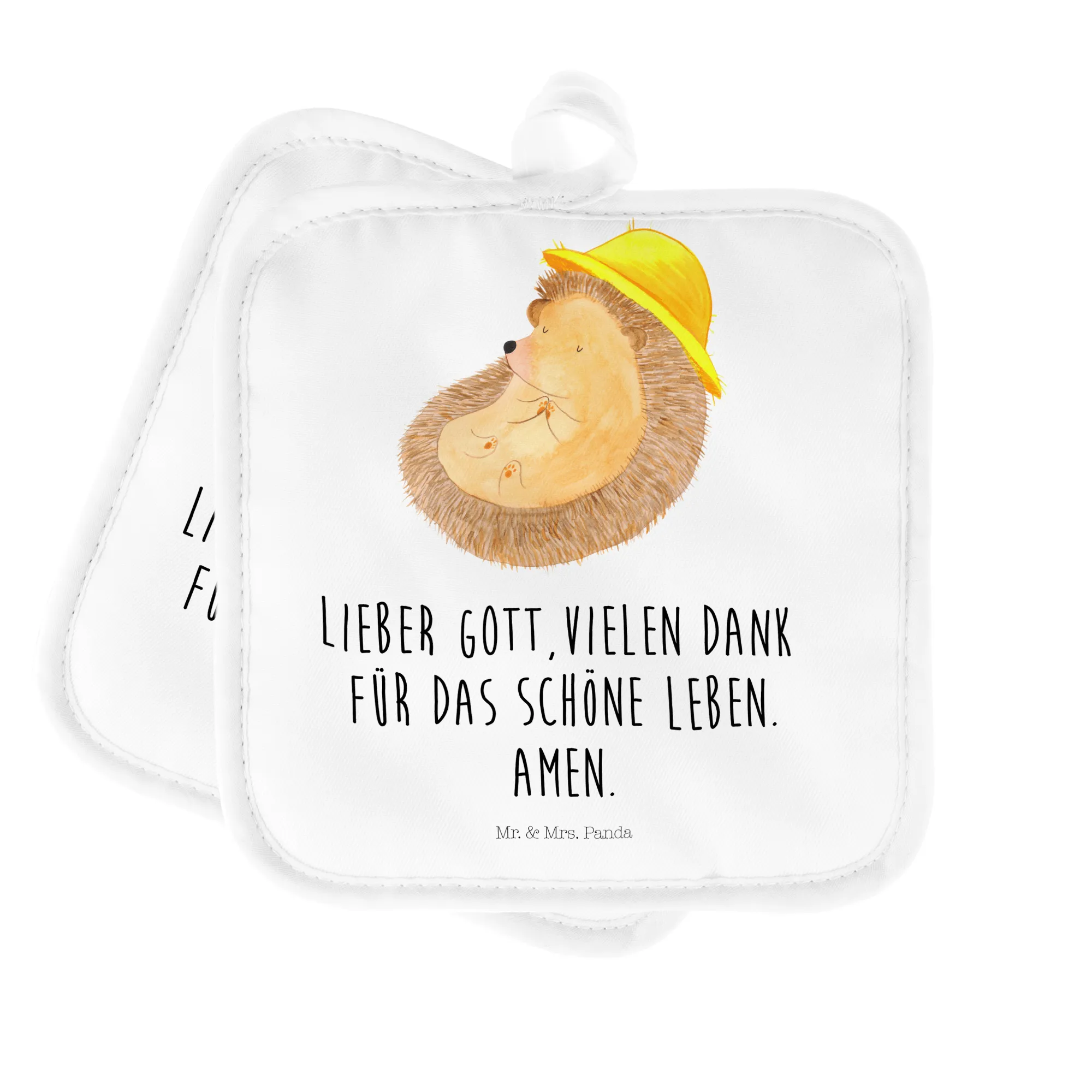 2er Set Topflappen  Igel Beten Topfuntersetzer, Topflappen 2er Set, Topfhandschuhe, Topflappenset, Topflappen Set, Topflappen, 2er Set Topflappen, topfhalter, Lustige Sprüche, Tiere, Tiermotive, Gute Laune, Dankbarkeit, Gott, Dankbar, Dankbar sein, Beten, Amen, Igel mit Hut, Igel, Sonnenhut, Leben, Genießen