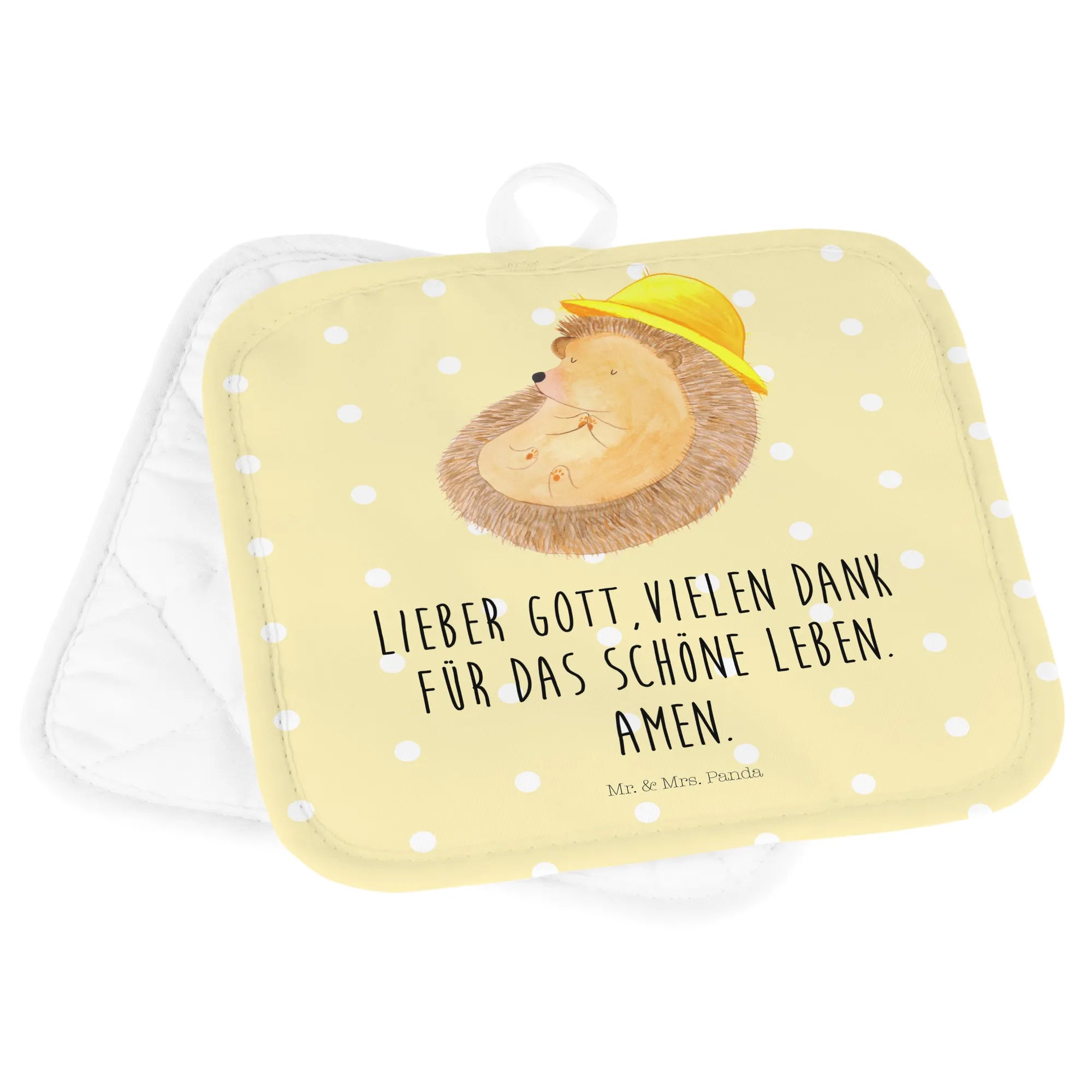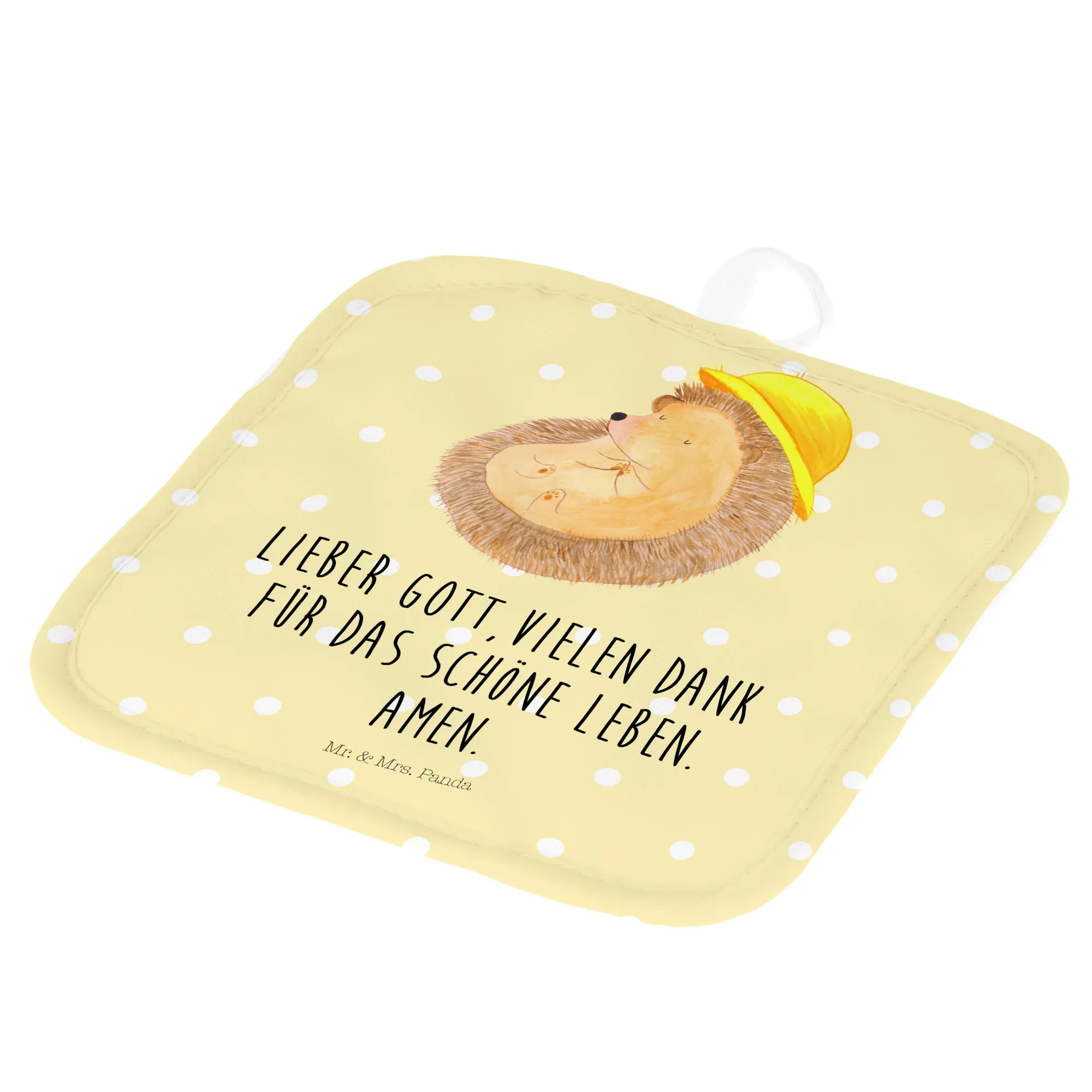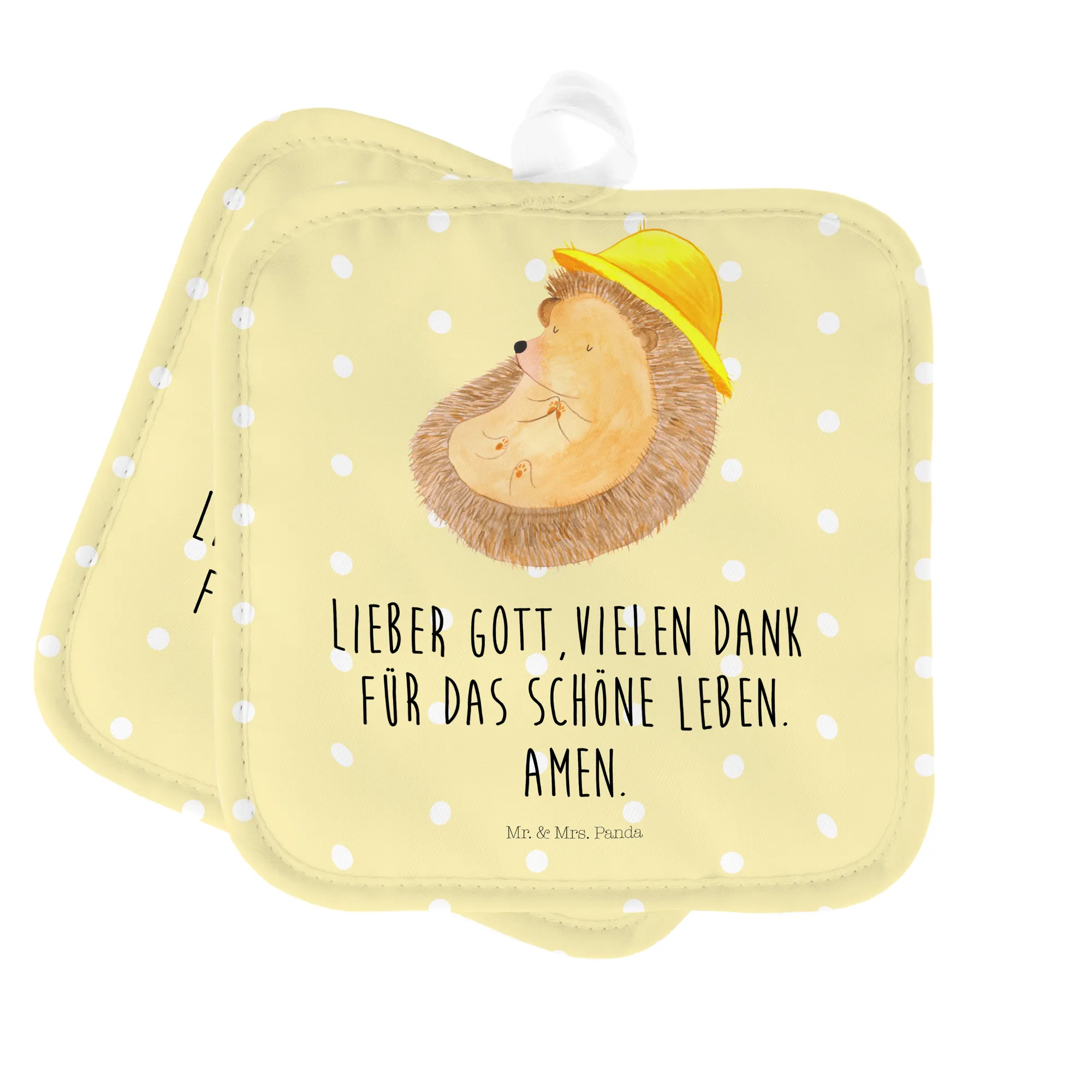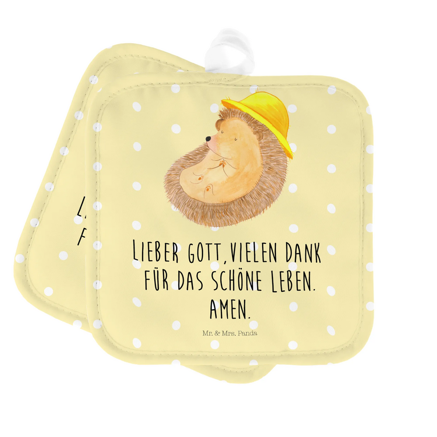 2er Set Topflappen Igel Beten - mit Spruch - Gelb Pastell