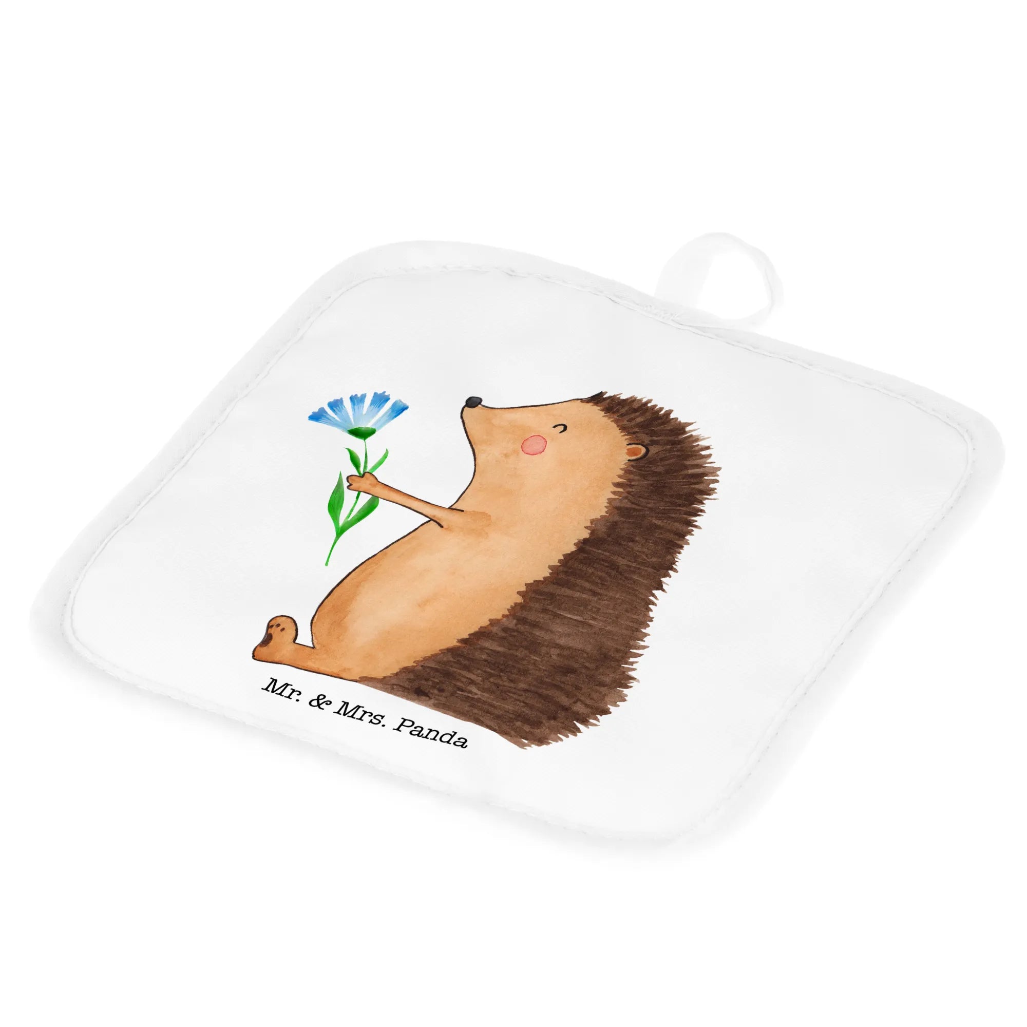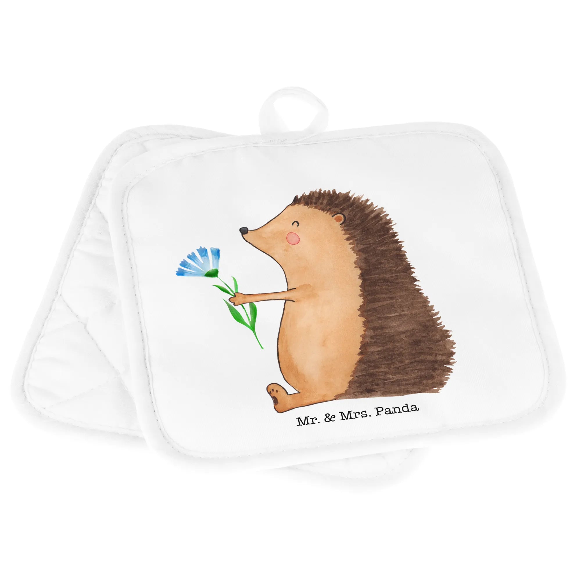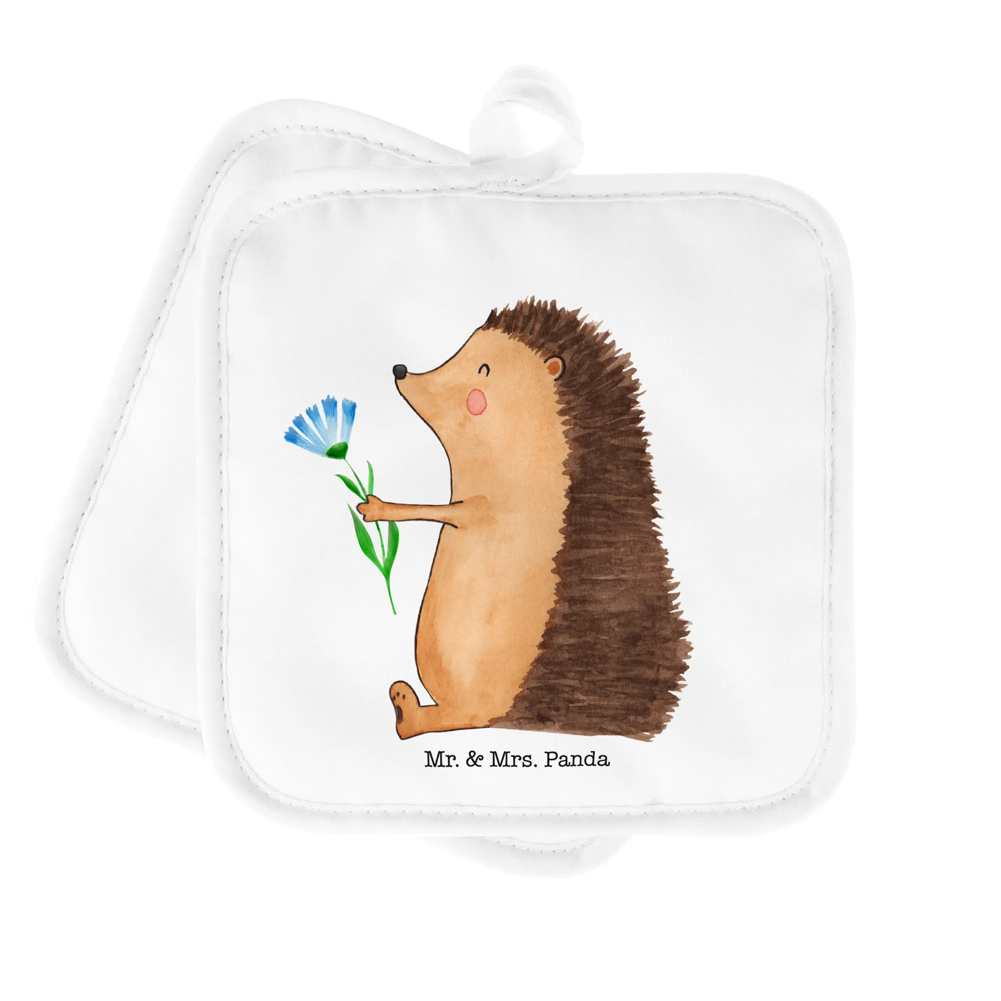 2er Set Topflappen Igel mit Blume - mit Spruch - Weiß