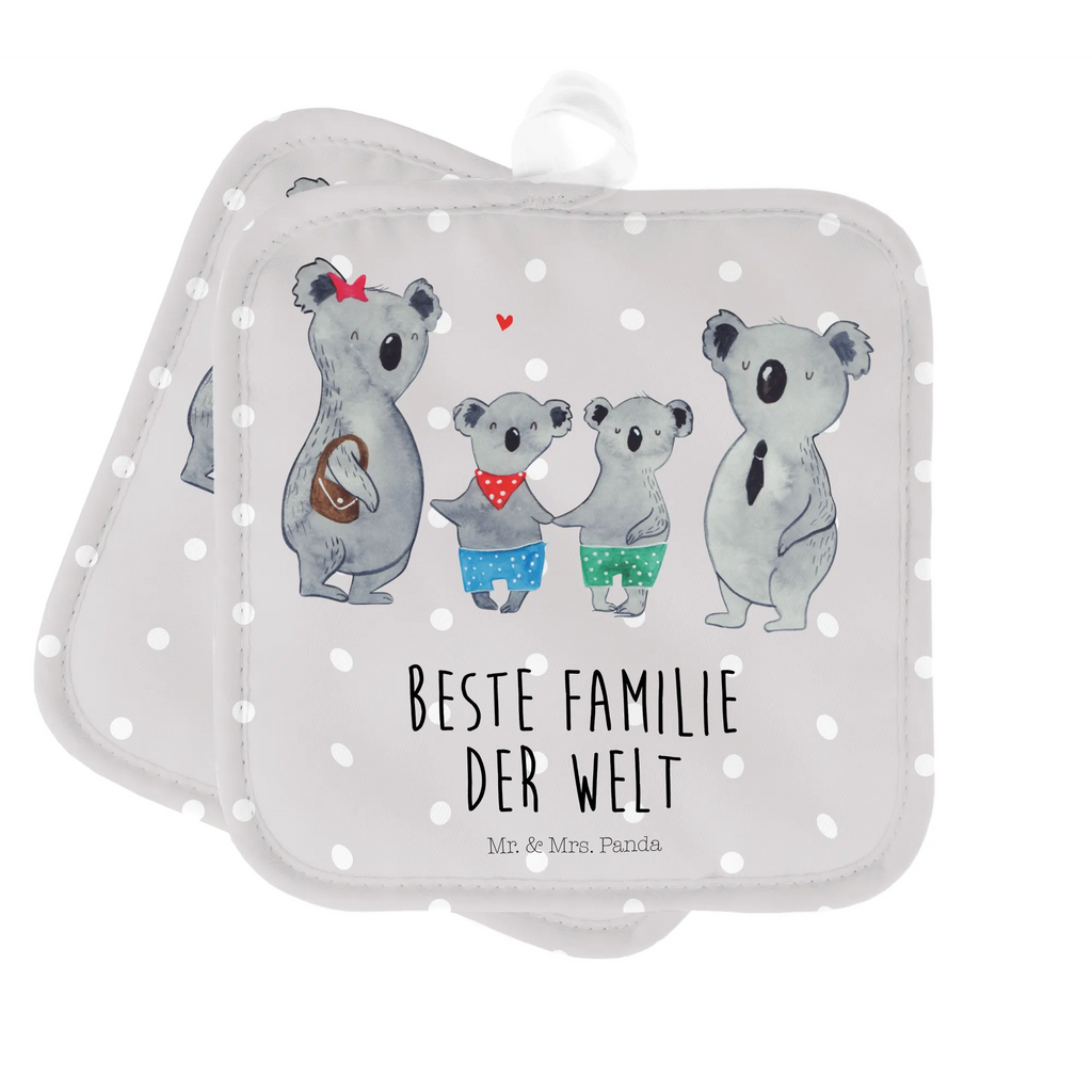 2er Set Topflappen Koala Familie zwei - mit Spruch - Grau Pastell