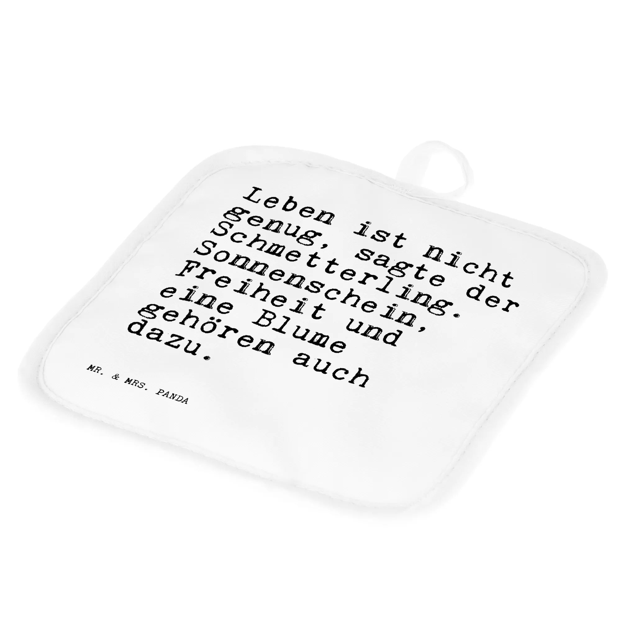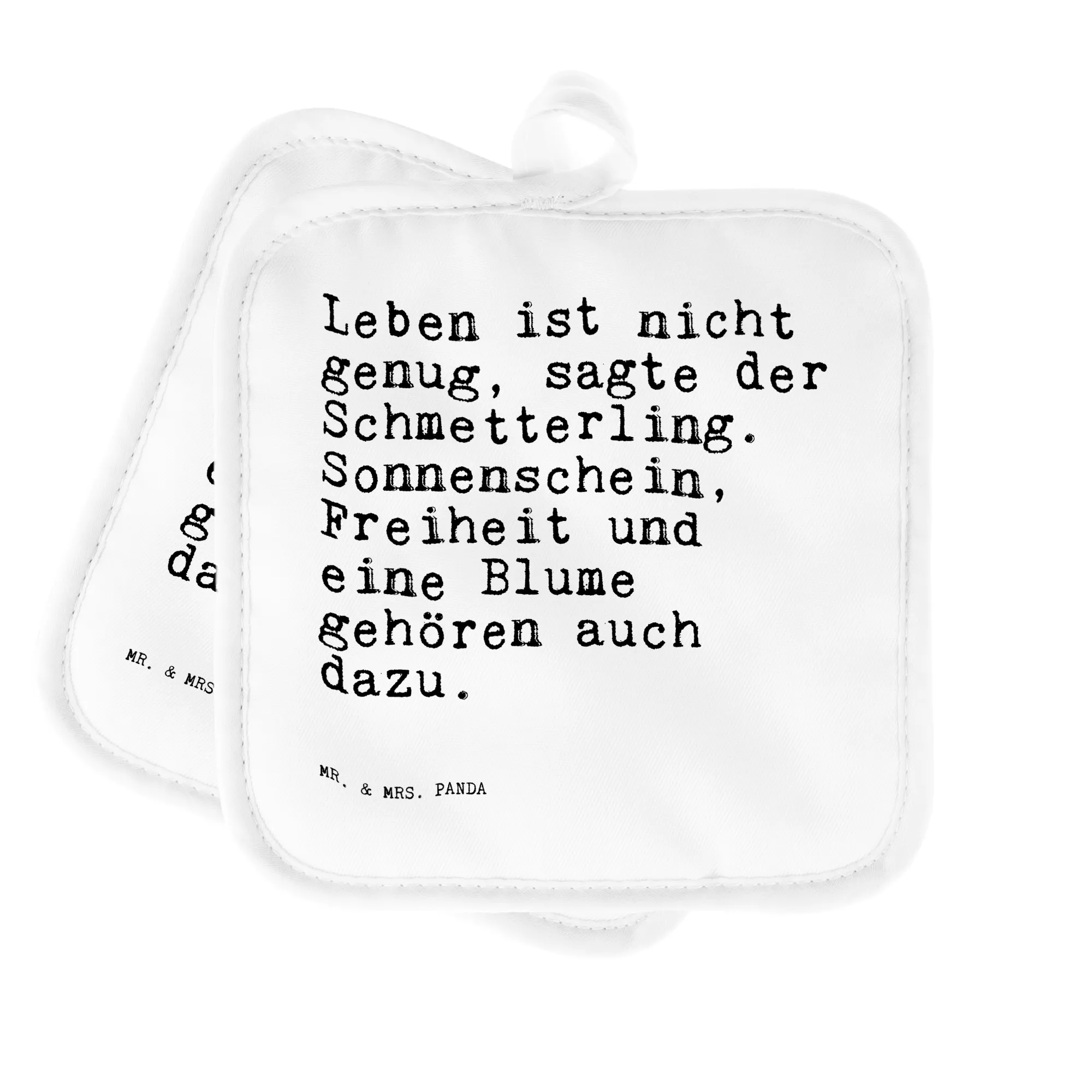 2er Set Topflappen Sprüche und Zitate Leben ist nicht genug, sagte der Schmetterling. Sonnenschein, Freiheit und eine Blume gehören auch dazu.