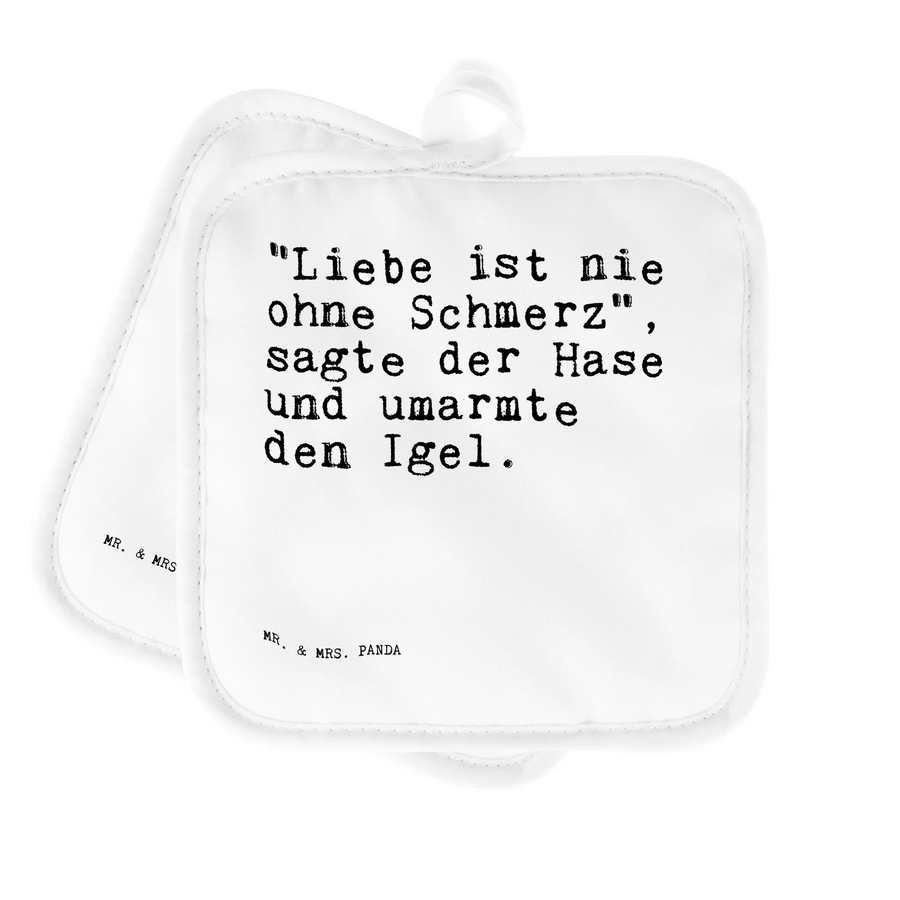 2er Set Topflappen Sprüche und Zitate "Liebe ist nie ohne Schmerz", sagte der Hase und umarmte den Igel.