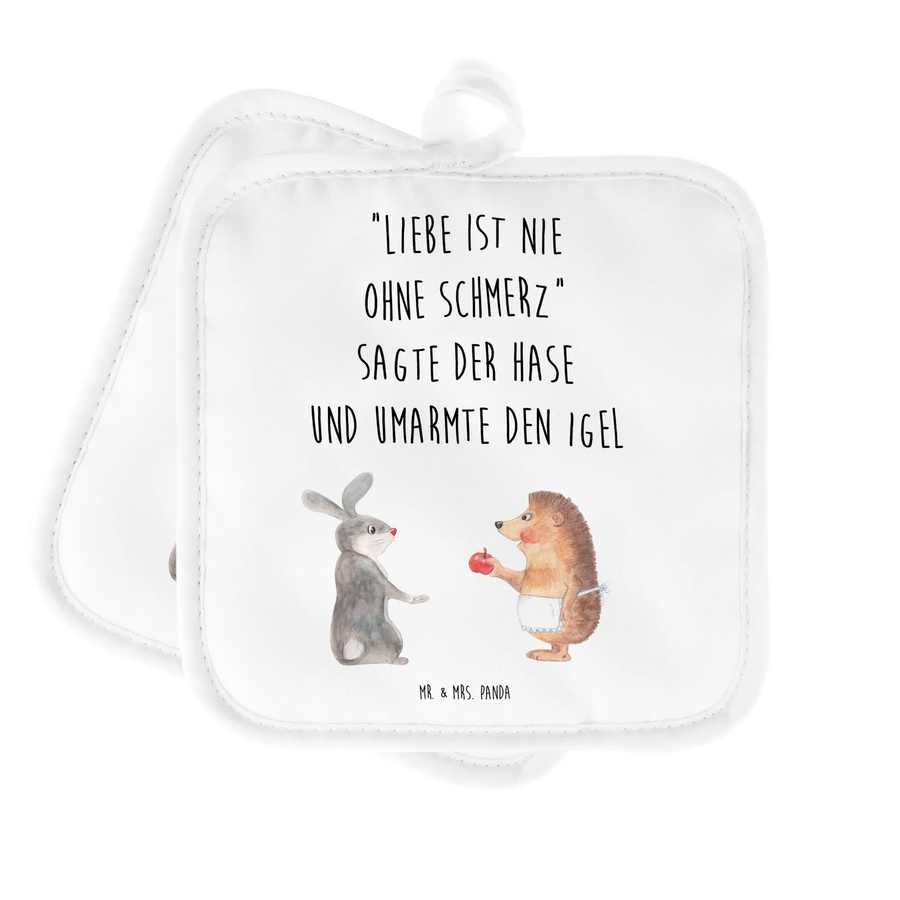 Du suchst das perfekte Geschenk für einen besonderen Menschen oder vielleicht für dein eigenes Zuhause? Dann sind die 2er Set Topflappen mit dem liebevollen Motiv 'Liebe ist nie ohne Schmerz' von Mr. & Mrs. Panda genau das Richtige für dich!