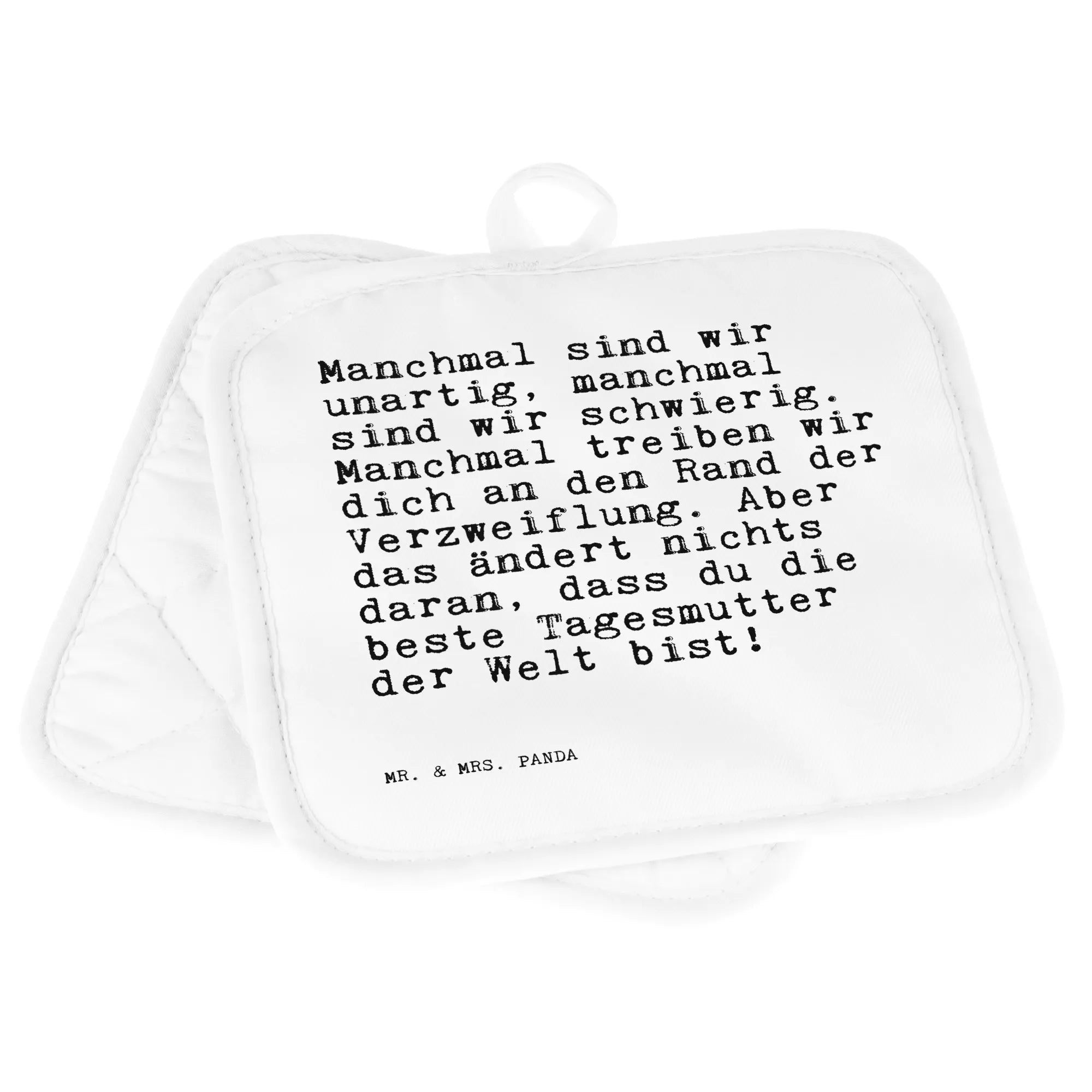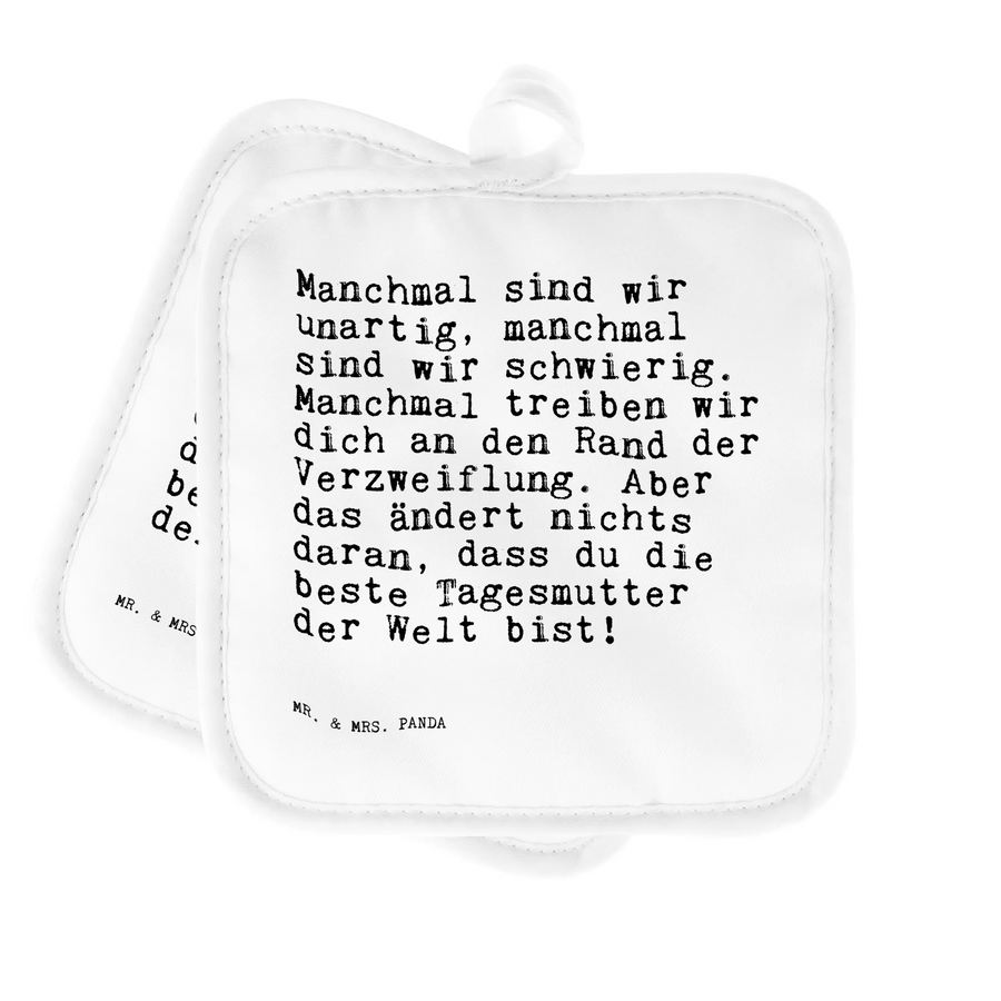 2er Set Topflappen Sprüche und Zitate Manchmal sind wir unartig, manchmal sind wir schwierig. Manchmal treiben wir dich an den Rand der Verzweiflung. Aber das ändert nichts daran, dass du die beste Tagesmutter der Welt bist!