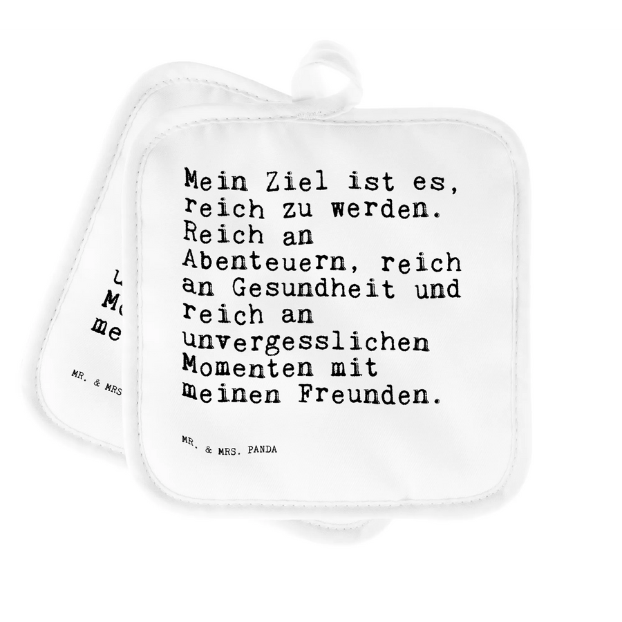 2er Set Topflappen Sprüche und Zitate Mein Ziel ist es, reich zu werden. Reich an Abenteuern, reich an Gesundheit und reich an unvergesslichen Momenten mit meinen Freunden.