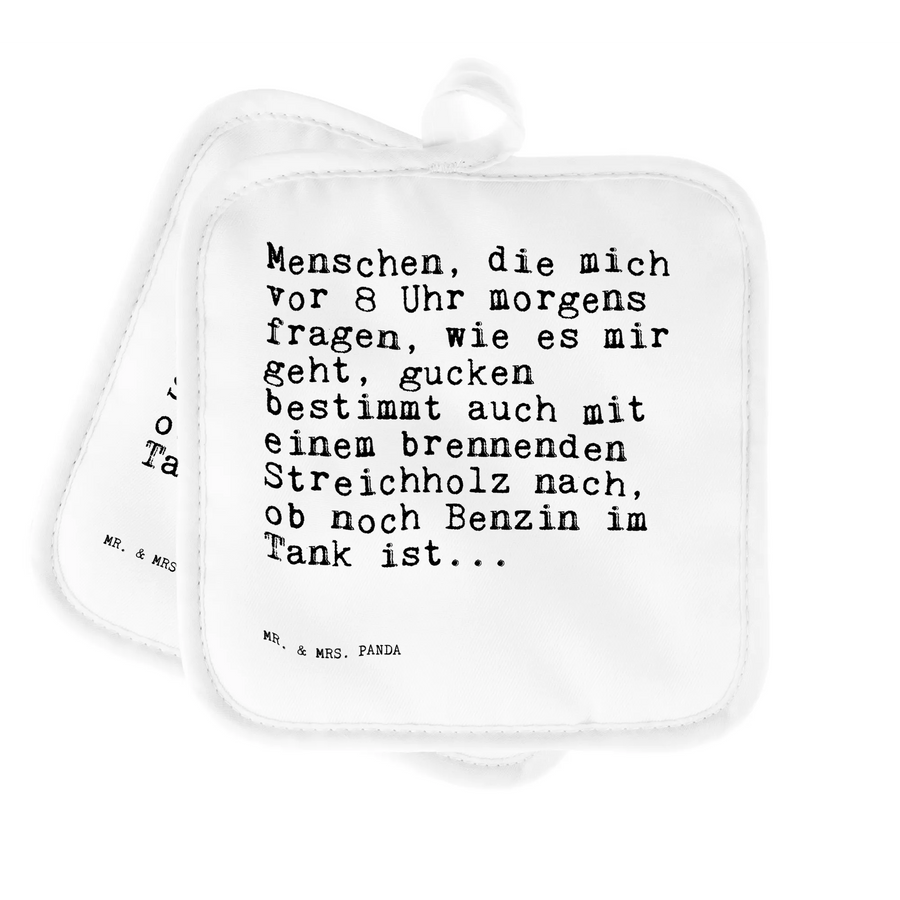 2er Set Topflappen Sprüche und Zitate Menschen, die mich vor 8 Uhr morgens fragen, wie es mir geht, gucken bestimmt auch mit einem brennenden Streichholz nach, ob noch Benzin im Tank ist...