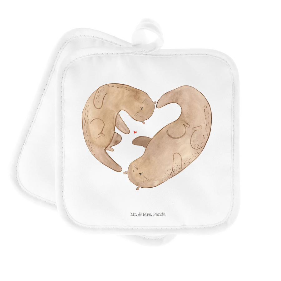 Entdecke die perfekte Geschenkidee für alle Otter-Liebhaber mit unserem 2er Set Topflappen "Otter Herz" aus der Otter - Kollektion von Mr. & Mrs. Panda!