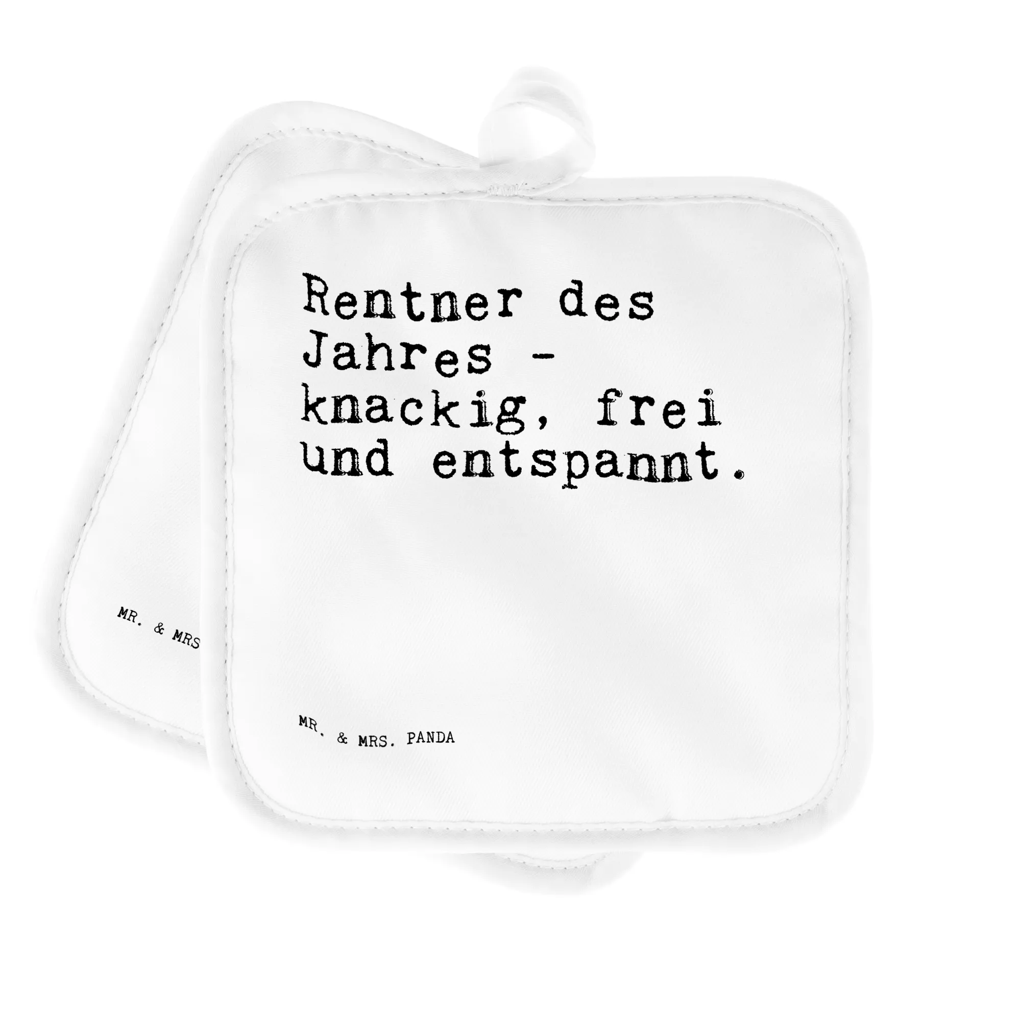 Greif jetzt zu und sichere Dir das 2er Set Topflappen "Rentner des Jahres - knackig, frei und entspannt" von Mr. & Mrs. Panda – Du wirst es lieben! 😊
