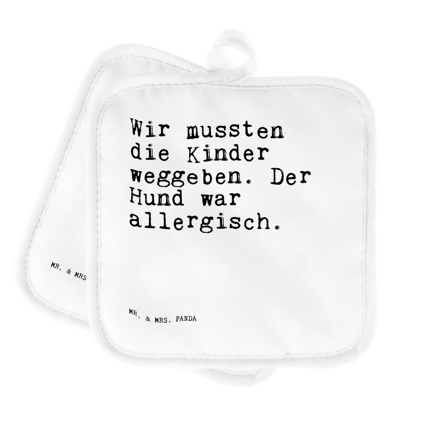 2er Set Topflappen Sprüche und Zitate Wir mussten die Kinder weggeben. Der Hund war allergisch.