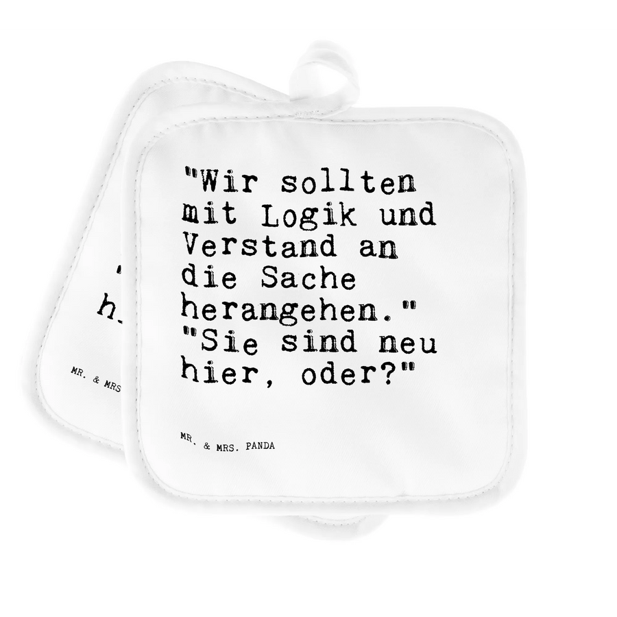 2er Set Topflappen Sprüche und Zitate "Wir sollten mit Logik und Verstand an die Sache herangehen." "Sie sind neu hier, oder?"