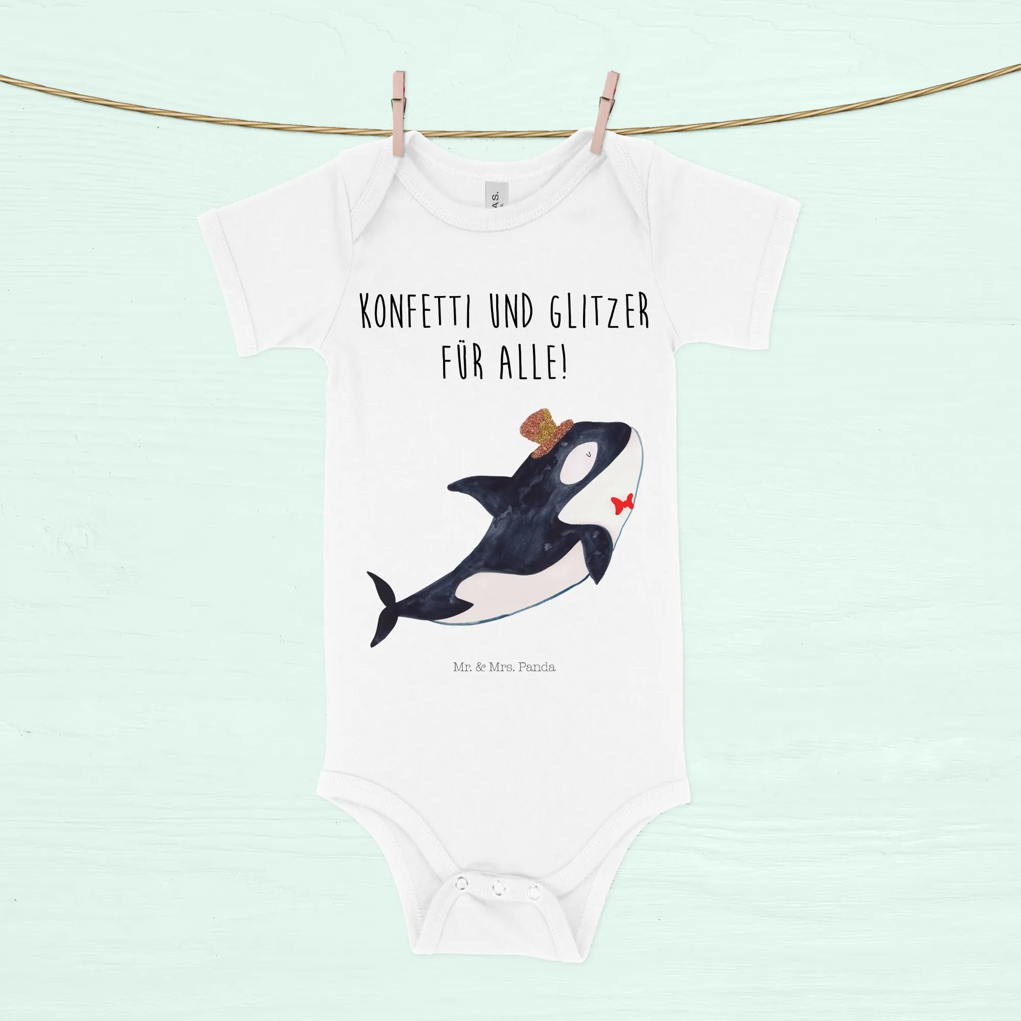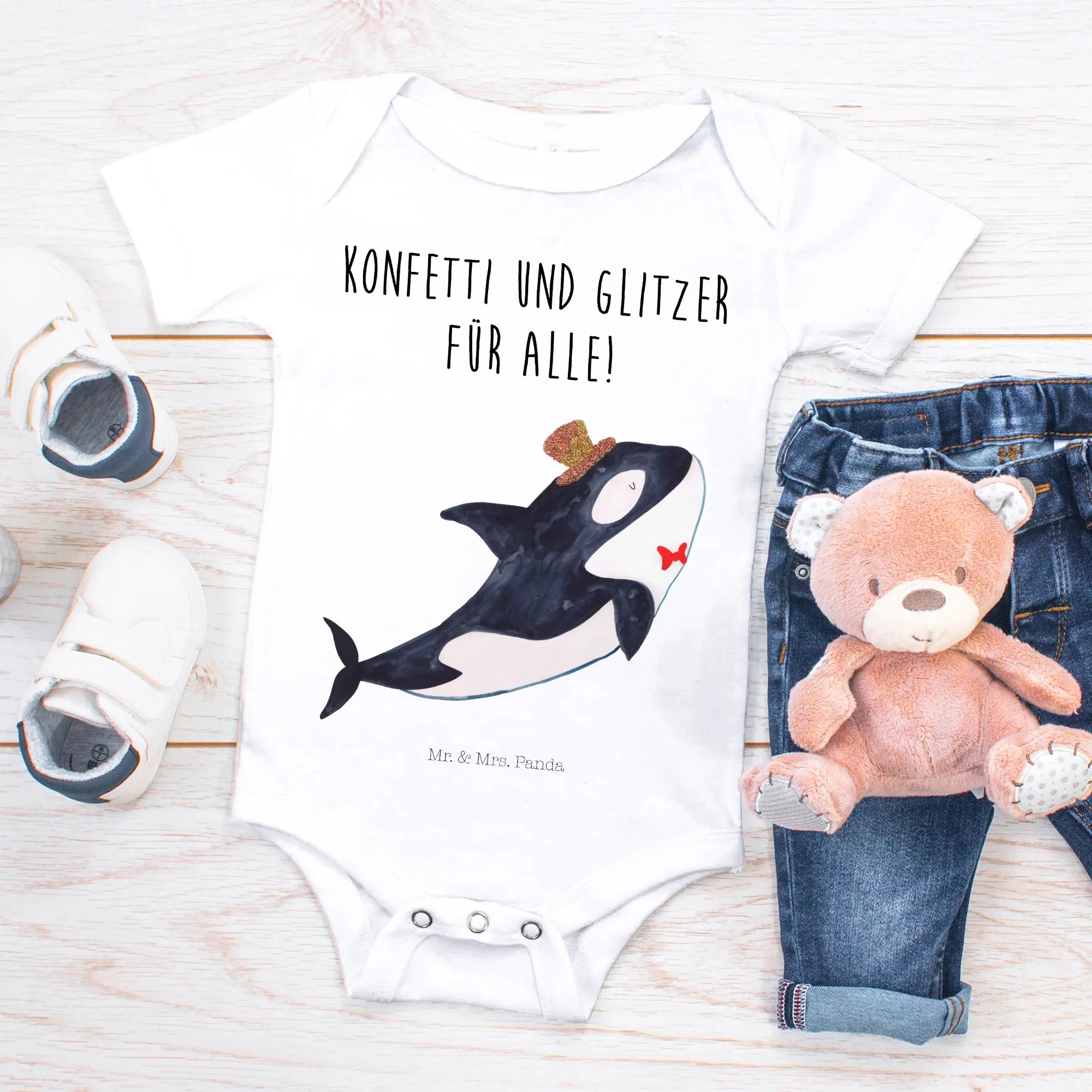 Dank des fröhlichen Designs mit dem Motto 'Konfetti und Glitzer für alle!' wird der Babybody bei jeder Feier zum Highlight. Er ist perfekt für die ersten Fotos, das Spielen und die Abenteuer des Tages. Das süße Orca-Motiv ist nicht nur ein echter Hingucker, sondern auch eine liebevolle Hommage an die Unterwasserwelt. Die Meerestiere Kollektion von Mr. & Mrs. Panda bietet all dies und noch viel mehr: Fische, Krebse, Wale und viele weitere Meeresbewohner, die die Vorstellungskraft sowohl von Kleinen als auch von Großen anregen.