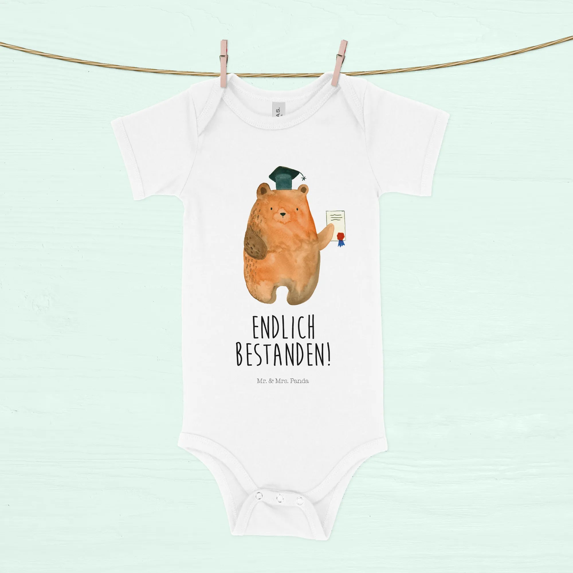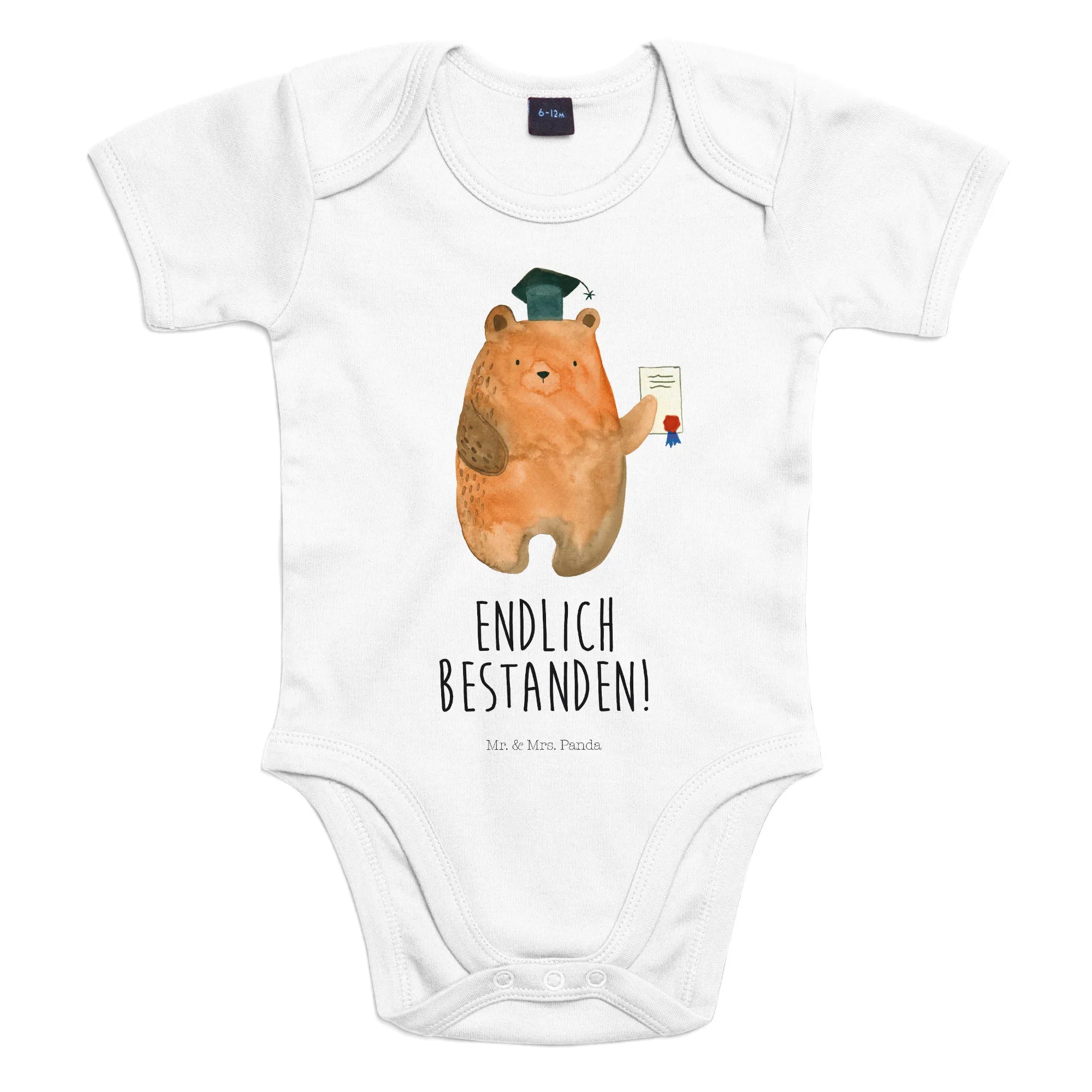 Entdecke die Welt von Mr. & Mrs. Panda und hole dir jetzt das einzigartige Baby Body mit dem Prüfungsbär-Motiv in euer Zuhause. Vertraue uns, dieser Babystrampler wird schnell zum Lieblingsstück im Kleiderschrank. Lass dir dieses niedliche Design nicht entgehen und mache das Geschenk für euer Baby oder als liebevolle Aufmerksamkeit für Freunde zu etwas ganz Besonderem. Wir sind sicher, jeder kleine Bär wird mit Stolz diesen Body tragen und die Prüfung als ein toller Meilenstein im Leben erkennen. Geschenkideen für Babys waren noch nie so herzerwärmend! Es ist Zeit, das Beste für die Kleinsten auszuwählen!