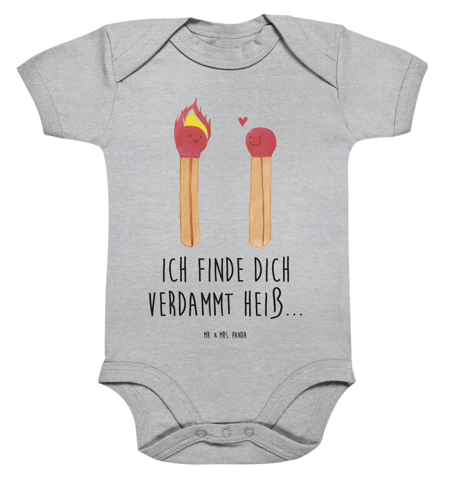 Der Organic Baby Body mit dem zauberhaften Motiv 'Streichhölzer' aus der Liebe Kollektion von Mr. & Mrs. Panda ist das perfekte Geschenk für kleine Glückskinder und ihre stolzen Eltern. Dieses besonders süße Design zeigt zwei fröhliche Streichhölzer, die auf liebevolle Weise miteinander verbunden sind. Das linke Streichholz funkelt vor Freude mit einem roten Kopf und gelben Flammen, während das rechte Streichholz, ebenfalls mit einem roten Kopf, ebenfalls glücklich strahlt. Zwischen den beiden ist ein kleines Herz zu sehen, das ihre innige Verbundenheit symbolisiert.