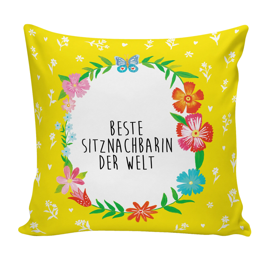 Lass das Kissen 'Sitznachbarin' ein Teil deiner Einrichtung und deiner Freundschaften werden – es wird schnell zum Hingucker in deinem Zuhause.
