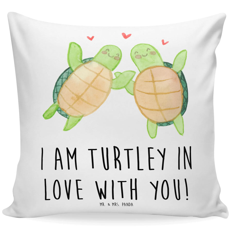 Das 40x40 Kissen mit dem süßen Motiv der Schildkröten von Mr. & Mrs. Panda ist das perfekte Geschenk für all jene, die die Liebe zelebrieren möchten. Ob zum Valentinstag, Hochzeitstag oder als kleines Liebesgeschenk zwischendurch - dieses Kissen trifft ins Herz. Auf der Kissenhülle sind zwei niedliche Schildkröten abgebildet, die sich zueinander gewandt haben und mit ihren strahlenden Gesichtern sowie den kleinen Herzen zwischen ihnen ihre Zuneigung zeigen.