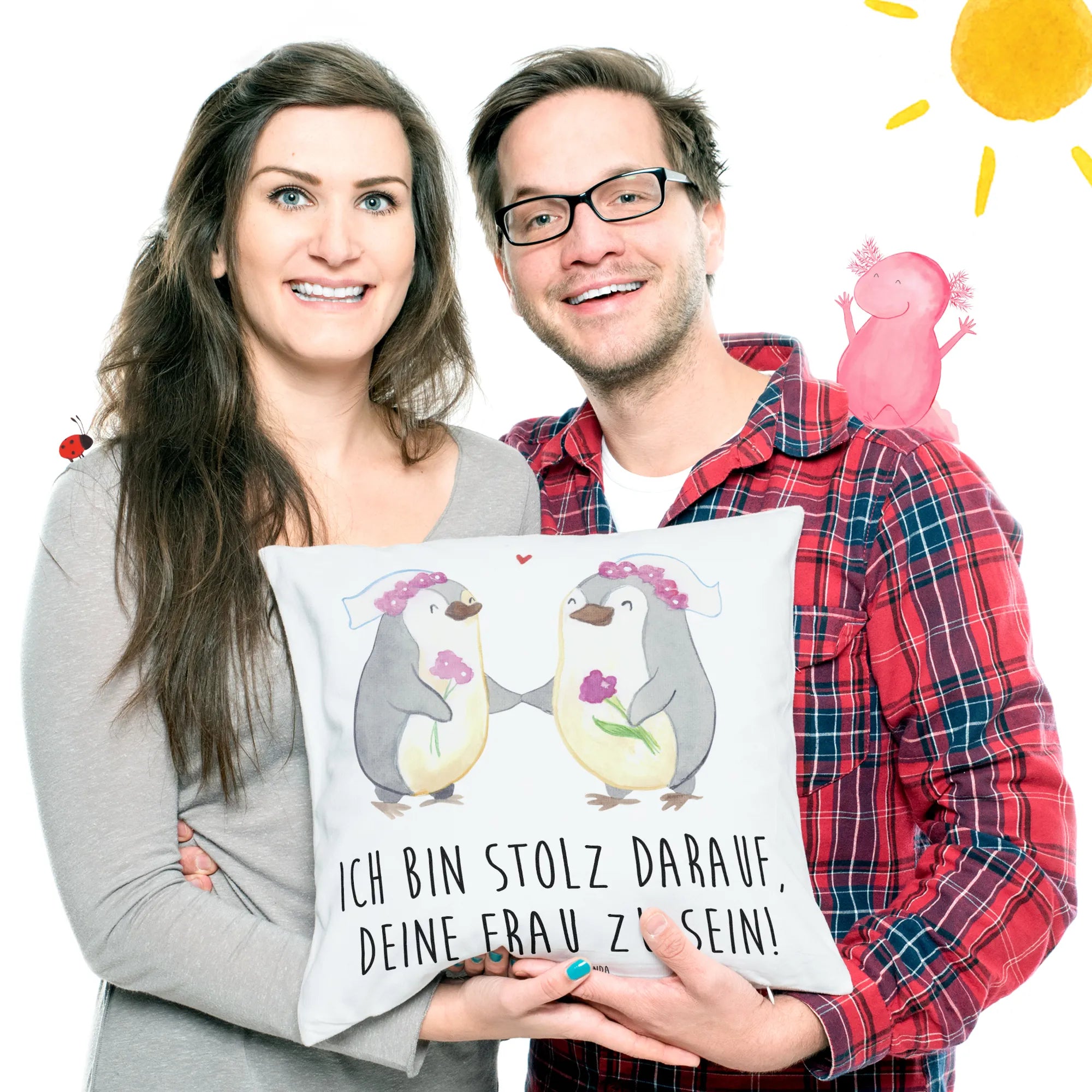 Mr. & Mrs. Panda Aquarell Pinguin Bräute – Motiv fürs gleichgeschlechtliche Brautpaar – Hochzeitsgeschenk
