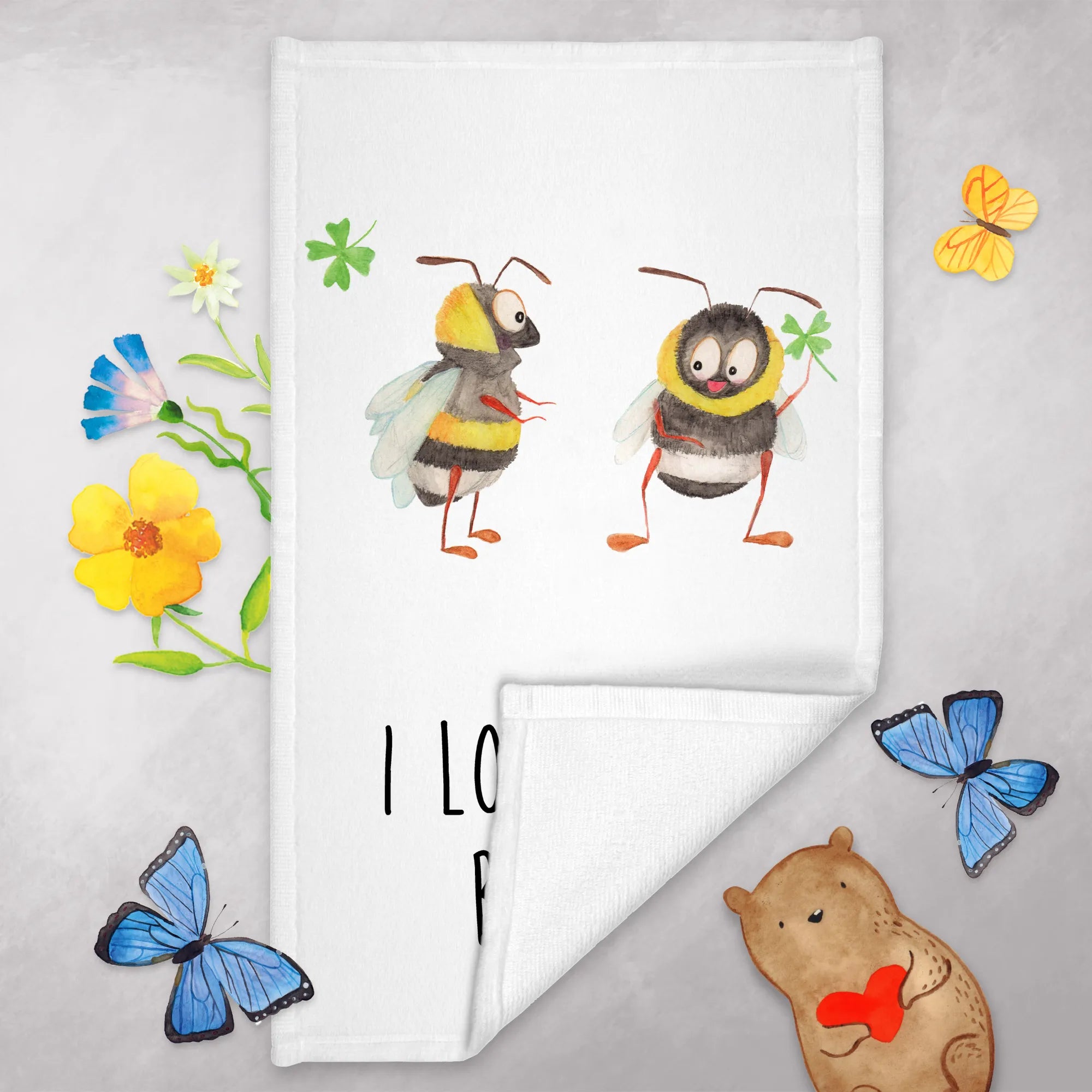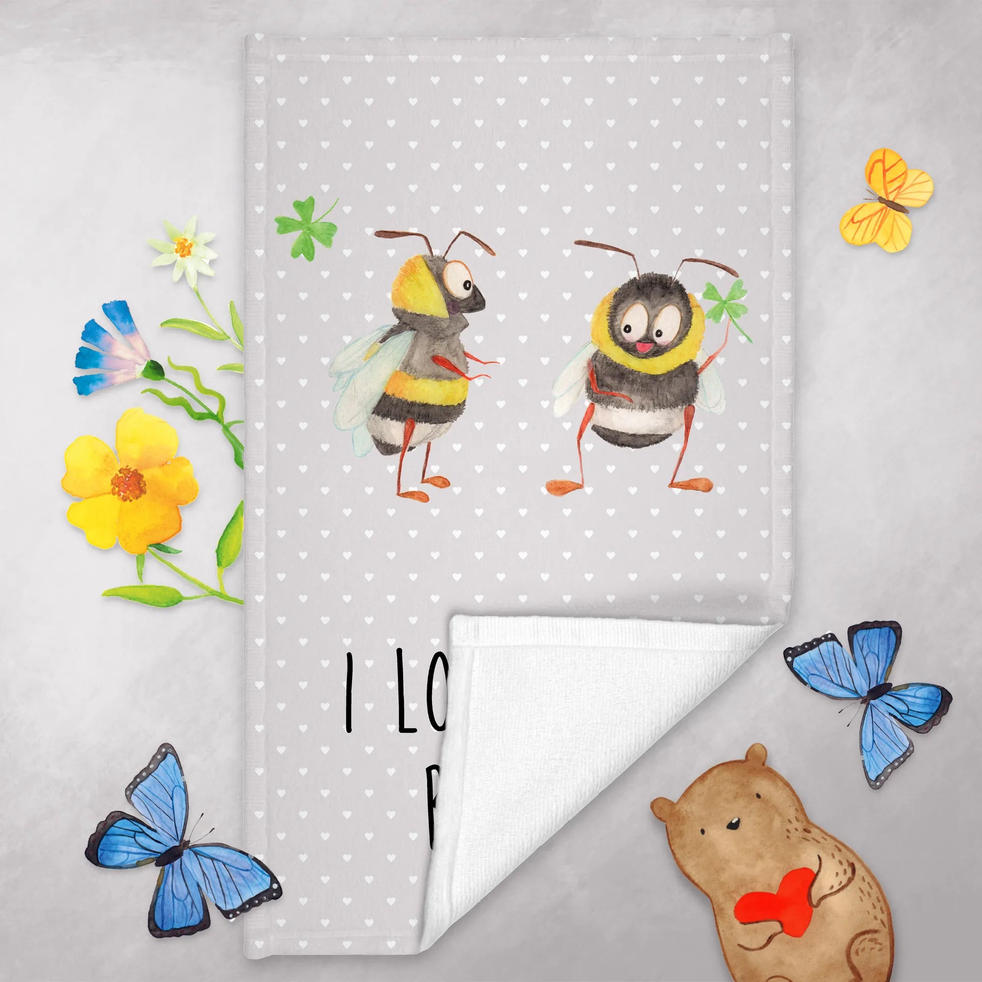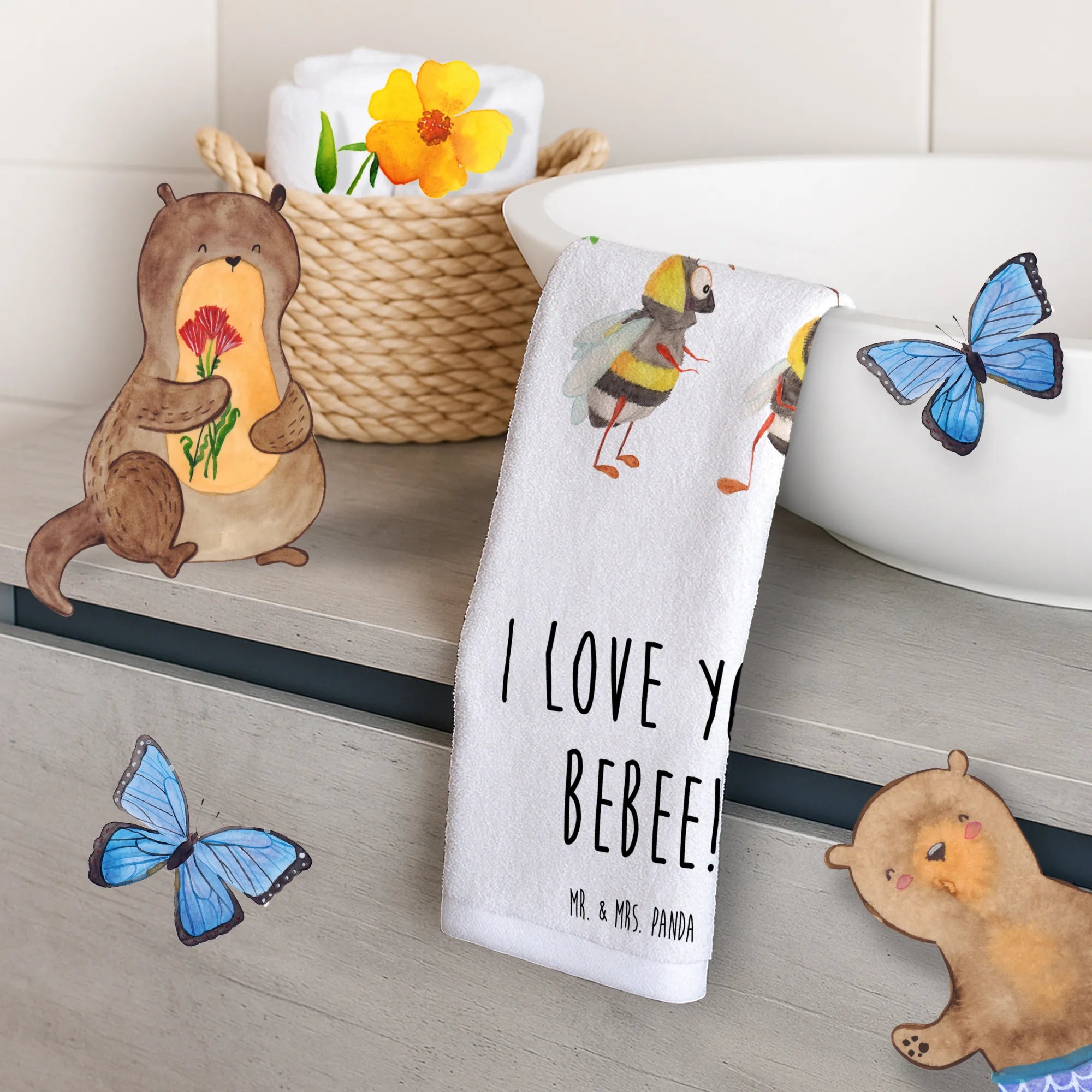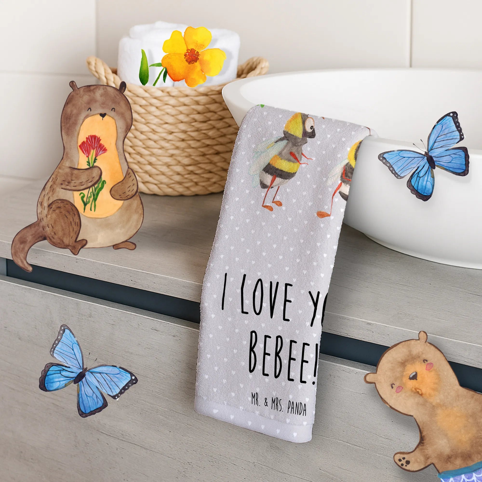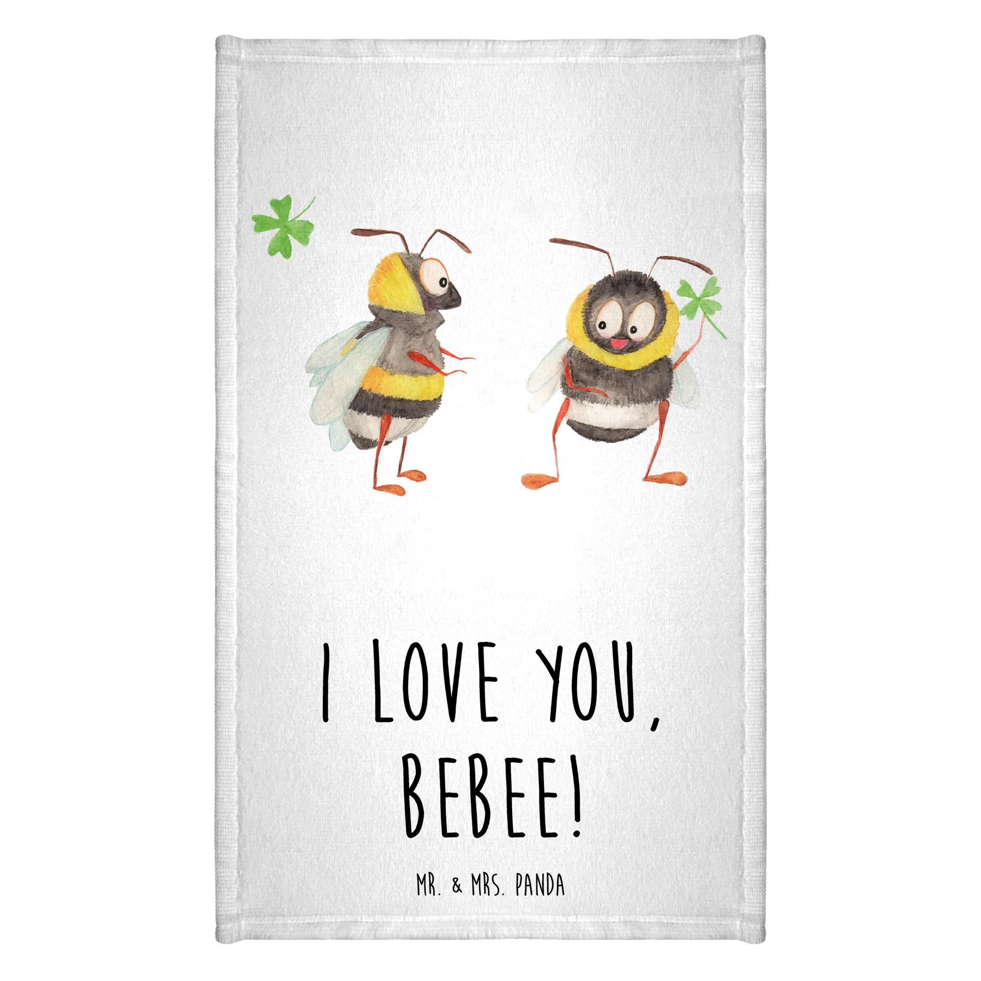 Das süße Gästetuch mit dem bezaubernden Motiv des Bienen Paares von Mr. & Mrs. Panda ist das perfekte Geschenk für all diejenigen, die die Liebe zelebrieren möchten! Mit seinem charmanten Design, das zwei niedliche Bienen zeigt, die sich verliebt anlächeln, strahlt dieses Handtuch Wärme und Glück aus. Egal, ob für den Valentinstag, den Hochzeitstag oder einfach als kleines Liebesgeschenk zwischendurch, es ist ideal für deinen Partner, deine Partnerin oder einen geliebten Menschen. Die Botschaft "I love you, bebee!" sorgt dafür, dass jeder Besuch in deinem Badezimmer ein bisschen romantischer wird. Du wirst sehen, wie es nicht nur dein Gästebad verschönert, sondern auch das Herz deines Gegenübers höherschlagen lässt.