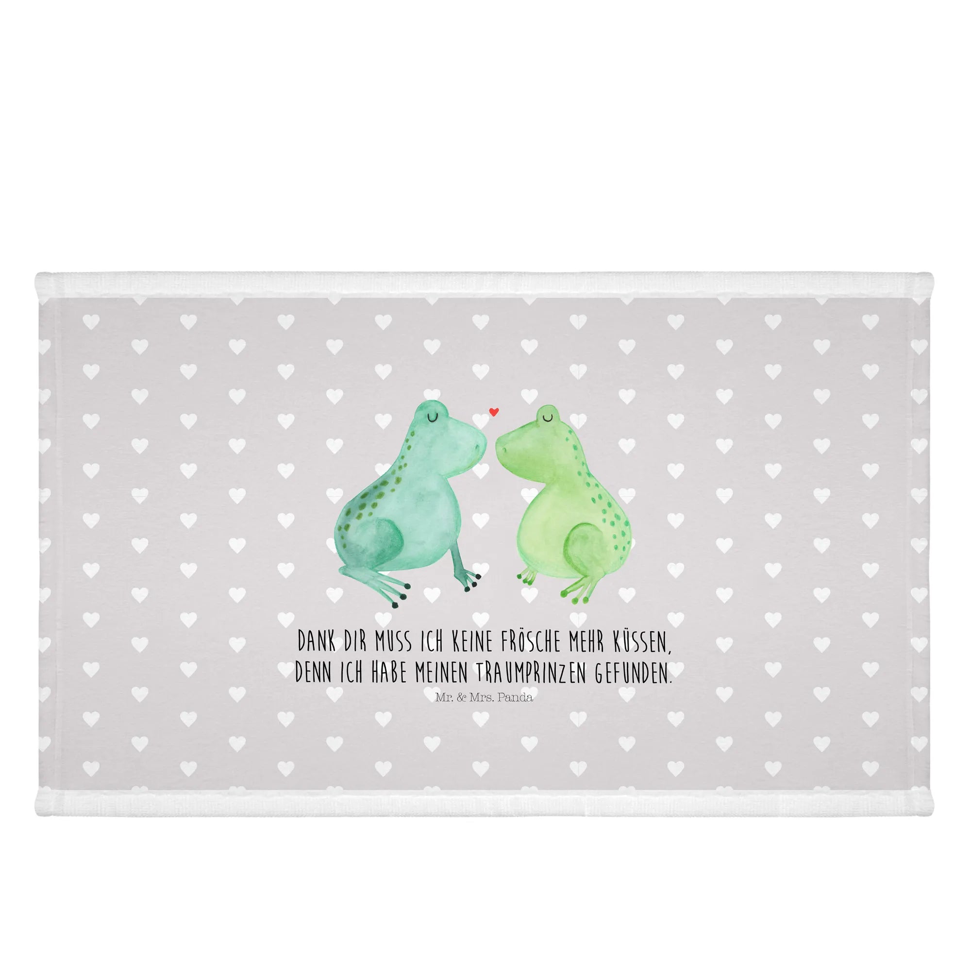 Du suchst nach dem perfekten Geschenk für deinen Liebsten oder deine Liebste? Dann ist das wunderschöne Gästehandtuch mit dem Motiv "Frosch Liebe" von Mr. & Mrs. Panda genau das Richtige für dich! Dieses hochwertige Handtuch ist nicht nur extra weich, sondern bringt auch Farbe und Freude in jedes Badezimmer. Die beiden niedlichen Frösche, die sich verliebt gegenüberstehen, symbolisieren die beste Art der Verbundenheit – die Liebe. Unter ihren Köpfen prangt ein rotes Herz, das eine süße Botschaft übermittelt: 'Dank dir muss ich keine Frösche mehr küssen, denn ich habe meinen Traumprinzen gefunden.'